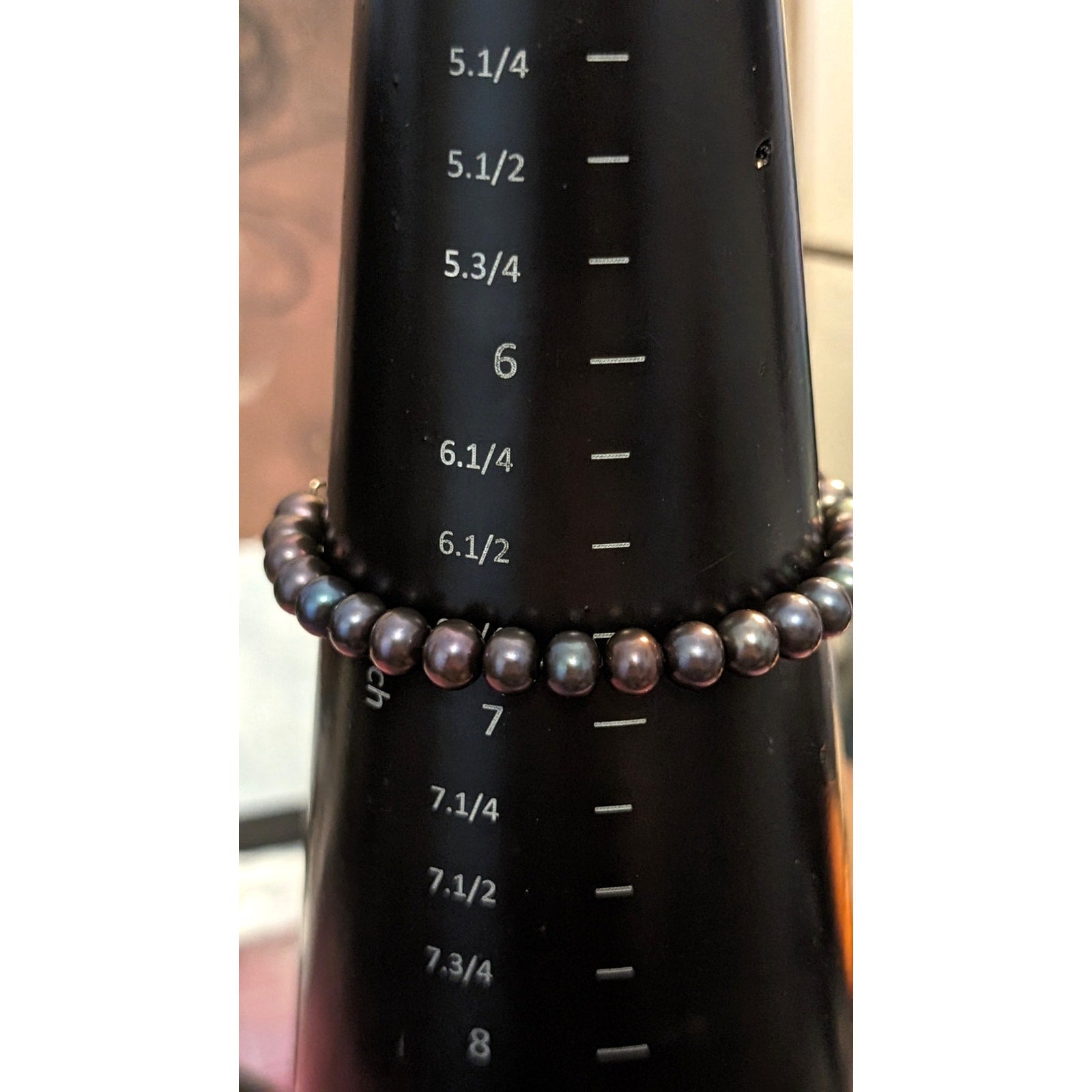 Vintage Sterling 5mm Freshwater Pearl Necklace & Bracelet Set. Pearls in shades of gray, purple, and green, not hand-knotted.. Spring ring clasps on both pieces marked 925. Necklace is 18" long and bracelet measures 7.5" long. Pre-owned, this vintage set is in great condition.