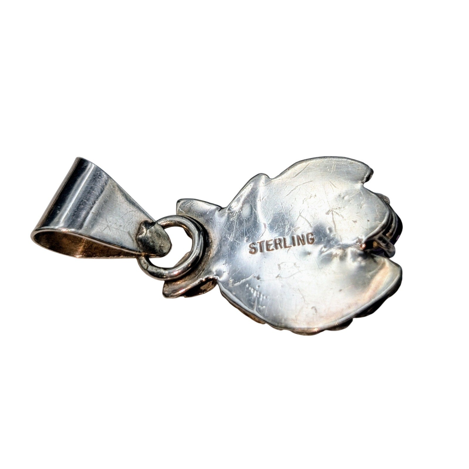 Vintage Sterling Genuine Amethyst Flower Pendant (Only). Sweet pendant for those who love purple or for the February baby. Large bale. This listing is for the pendant only. Pre-owned, this pendant is in excellent condition.