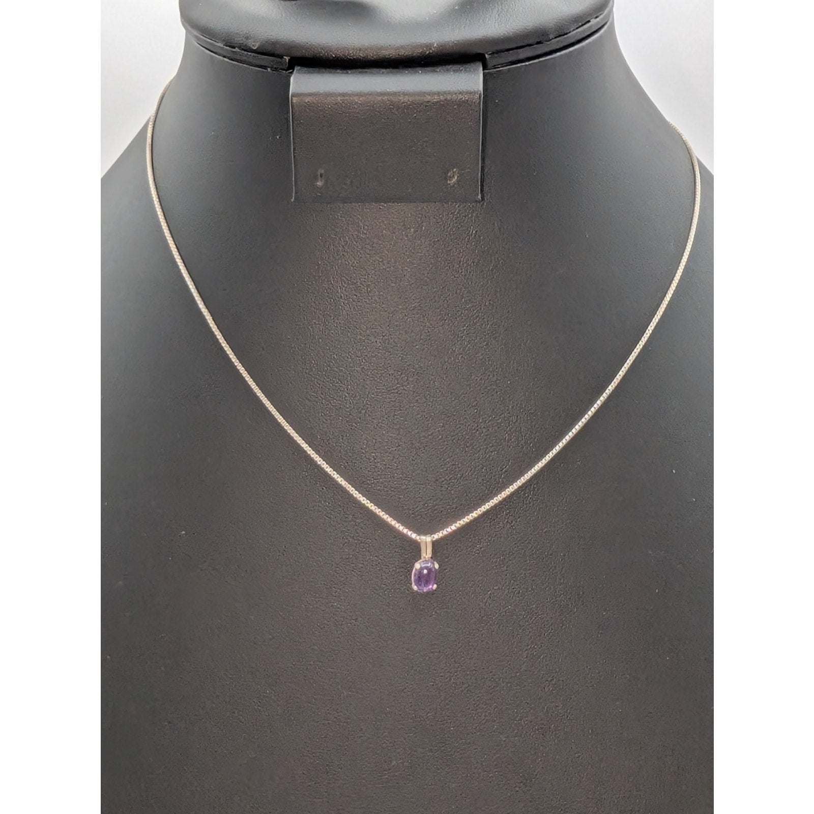 Vintage Sterling Silver Amethyst Cabochon Pendant Box Chain 16" Necklace. Pre-owned, this necklace is in great vintage condition.
