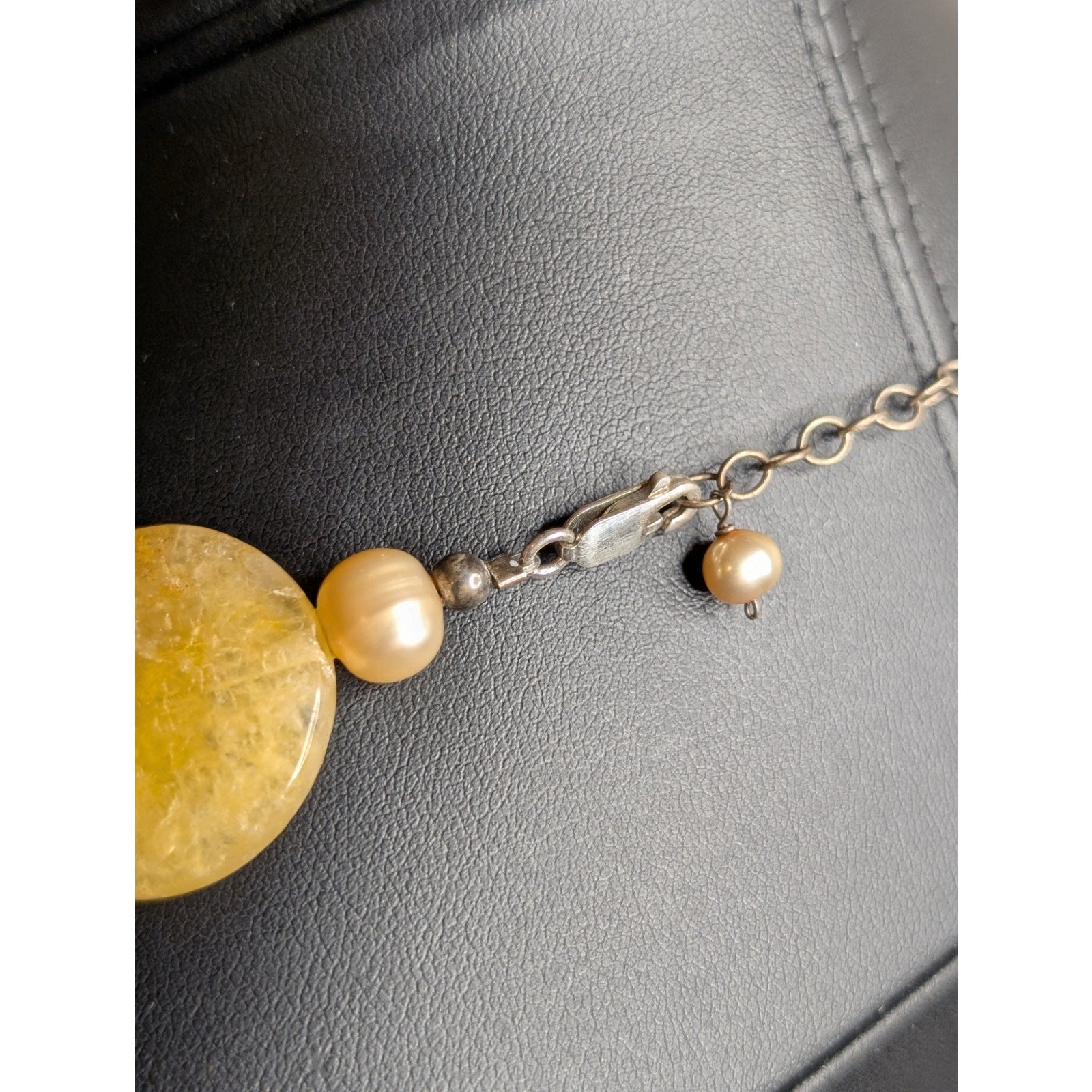 Vintage Sterling Silver Citrine Stone Champagne Genuine Pearl Beaded Necklace