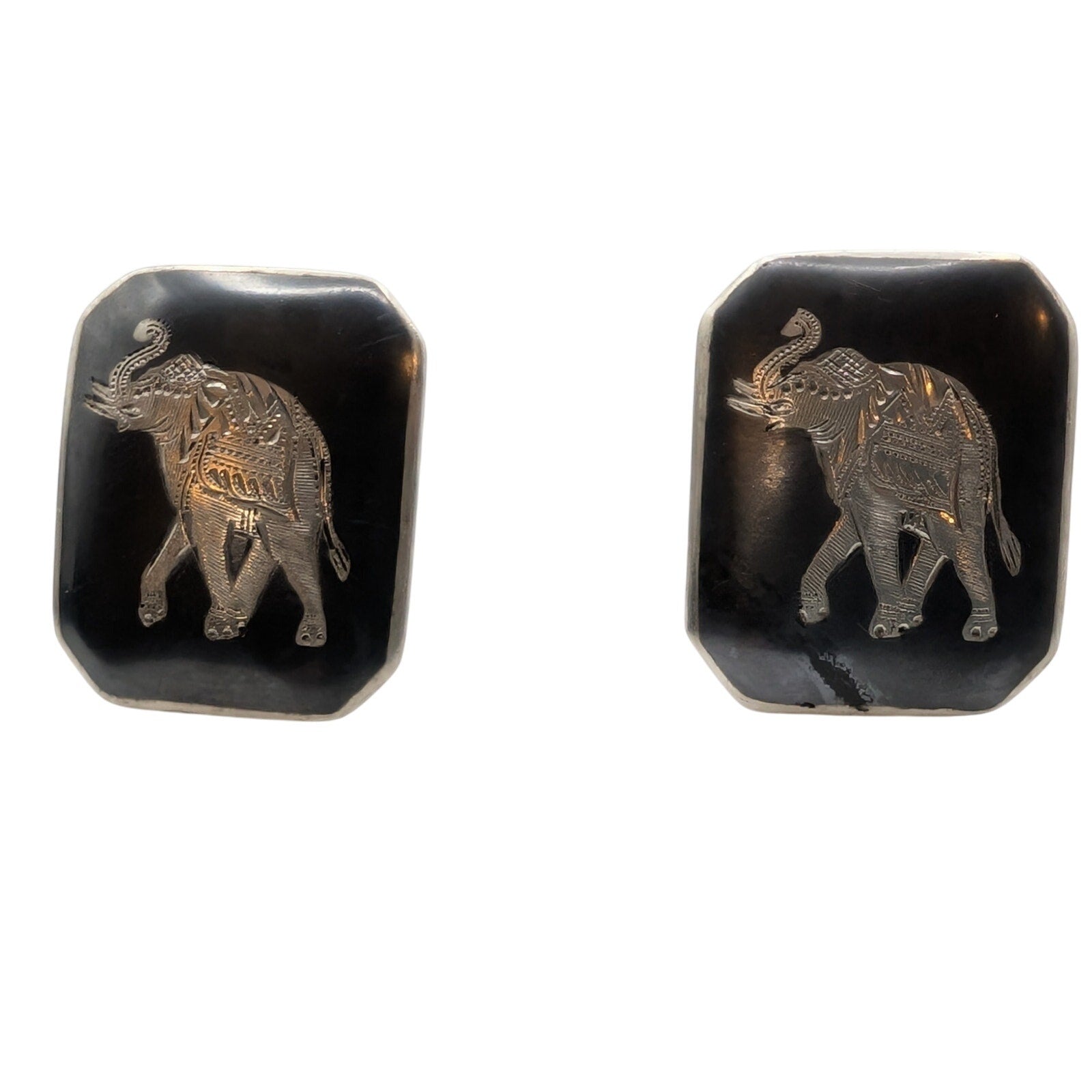 Vintage Sterling Silver Siam Elephant Cuff Links