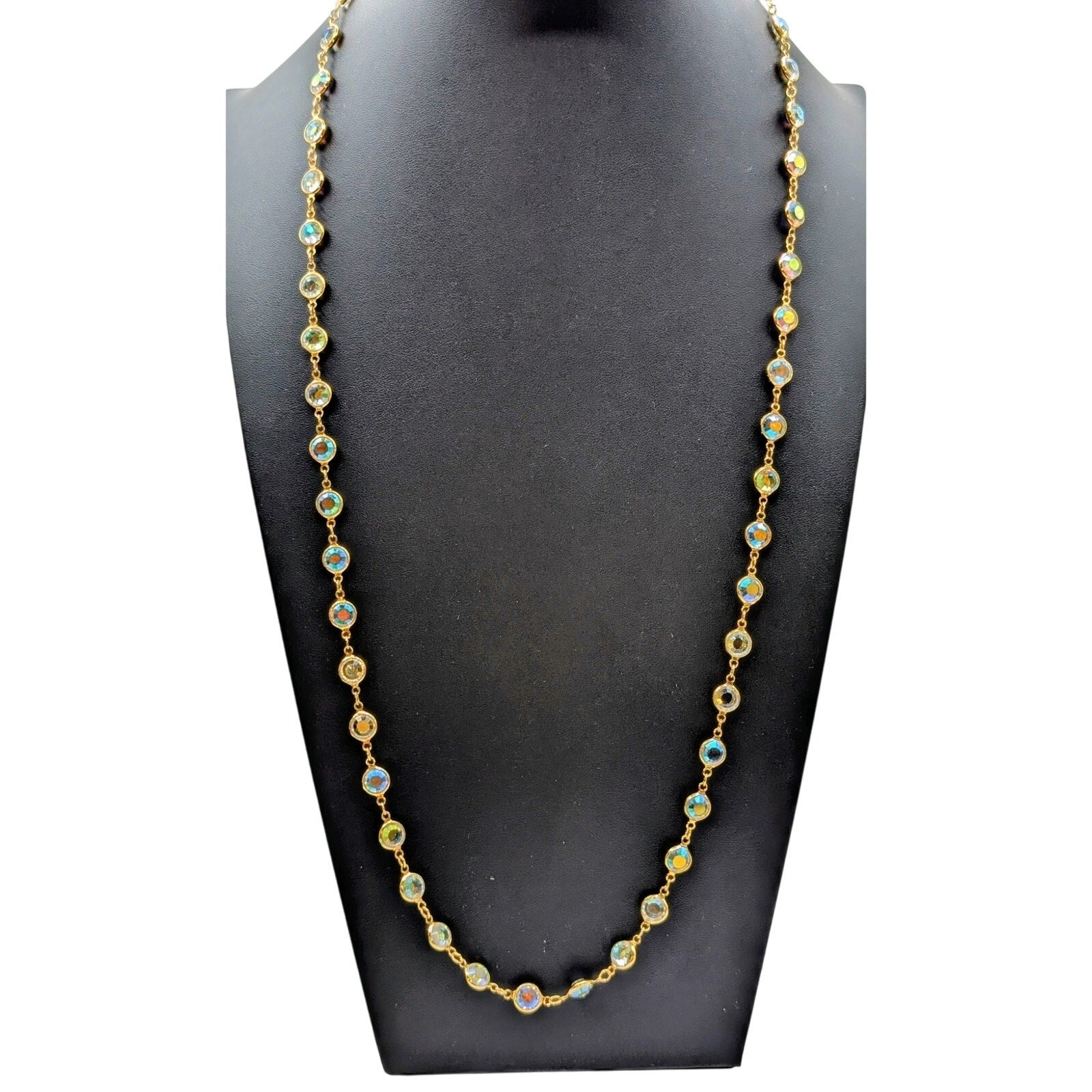 Vintage Swarovski Gold Tone Bezel Set AB Crystal Chain 34" Necklace. Pre-owned, this necklace is in excellent vintage condition. So...much...sparkle!