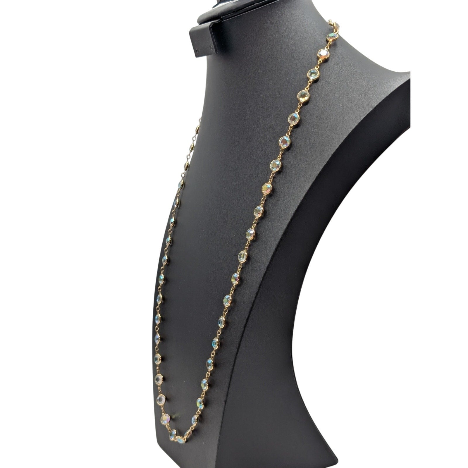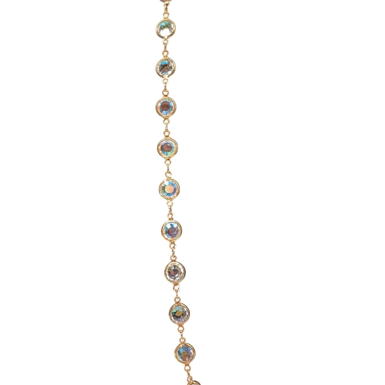 Vintage Swarovski Gold Tone Bezel Set AB Crystal Chain 34" Necklace