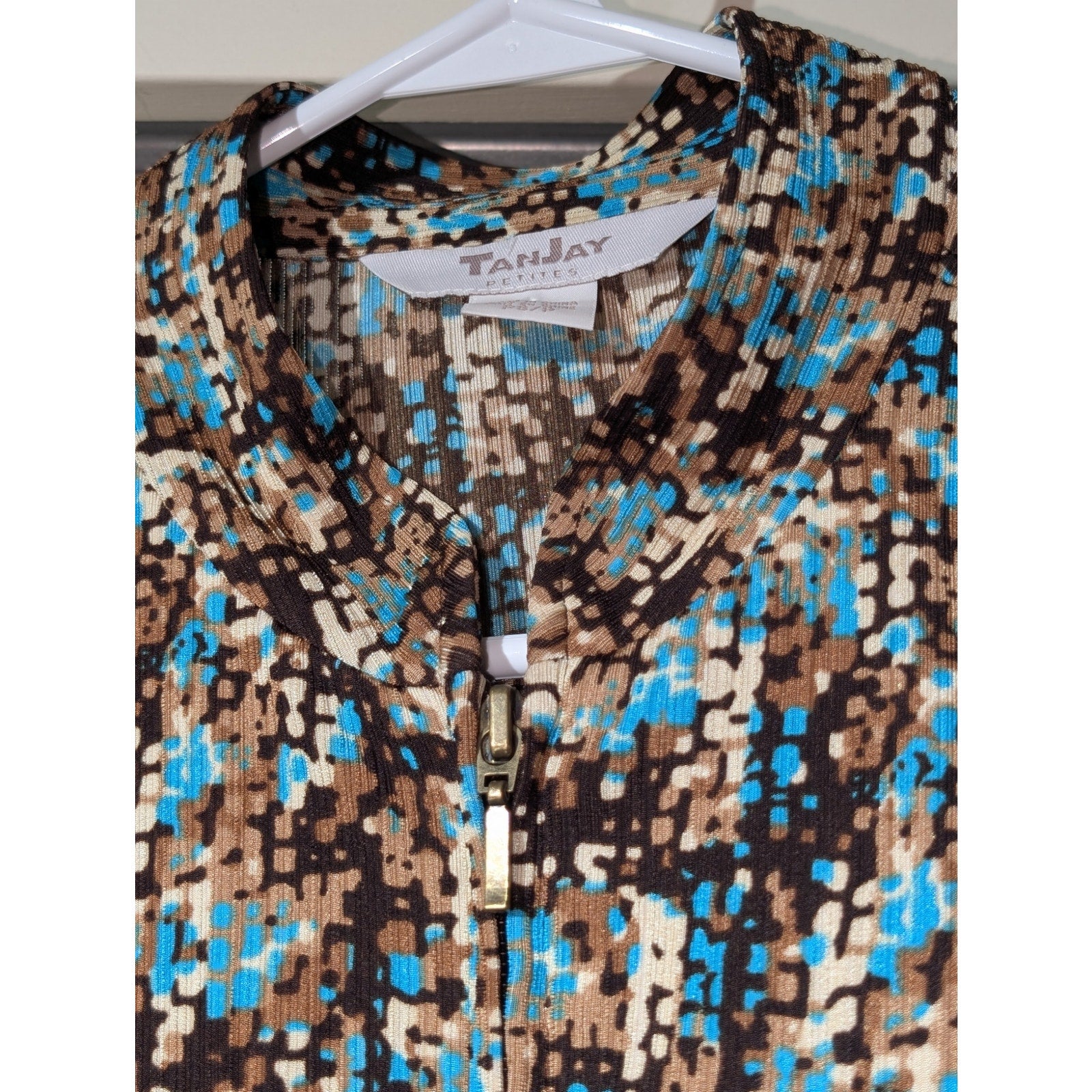 Vintage Tanjay Brown Aqua Zip Front 'Track Jacket' Womens Size S Petite. Pre-owned, this jacket is in excellent vintage condition. Measurement photos are of armpit to armpit and length from shoulder to hem.