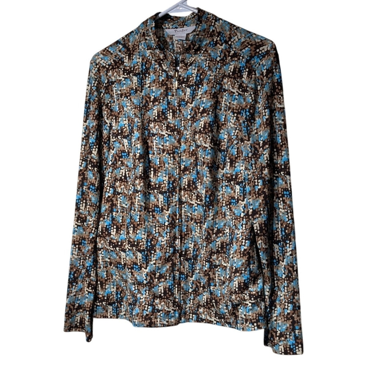 Vintage Tanjay Brown Aqua Zip Front 'Track Jacket' Womens Size S Petite