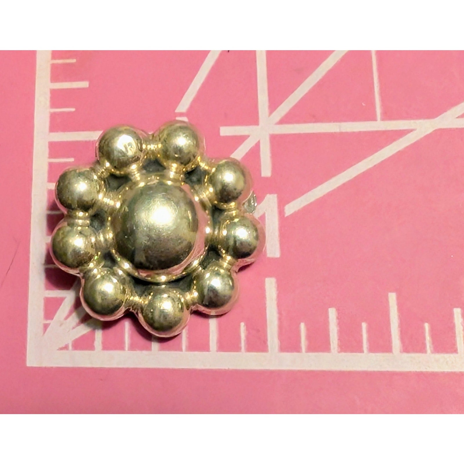 Vintage Taxco 925 Sterling Silver Domed Beaded Flower Clip On Earrings 13.19g. Pre-owned, these earrings are in excellent vintage condition.