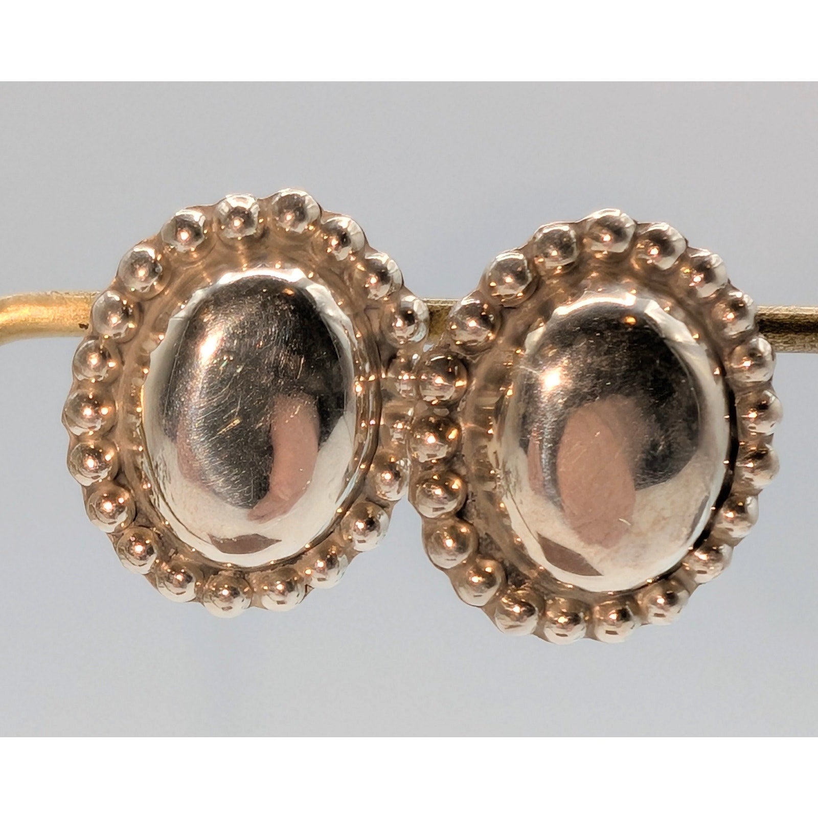 Vintage Taxco 925 Sterling Silver Oval Beaded Domed Stud Earrings 13.2g