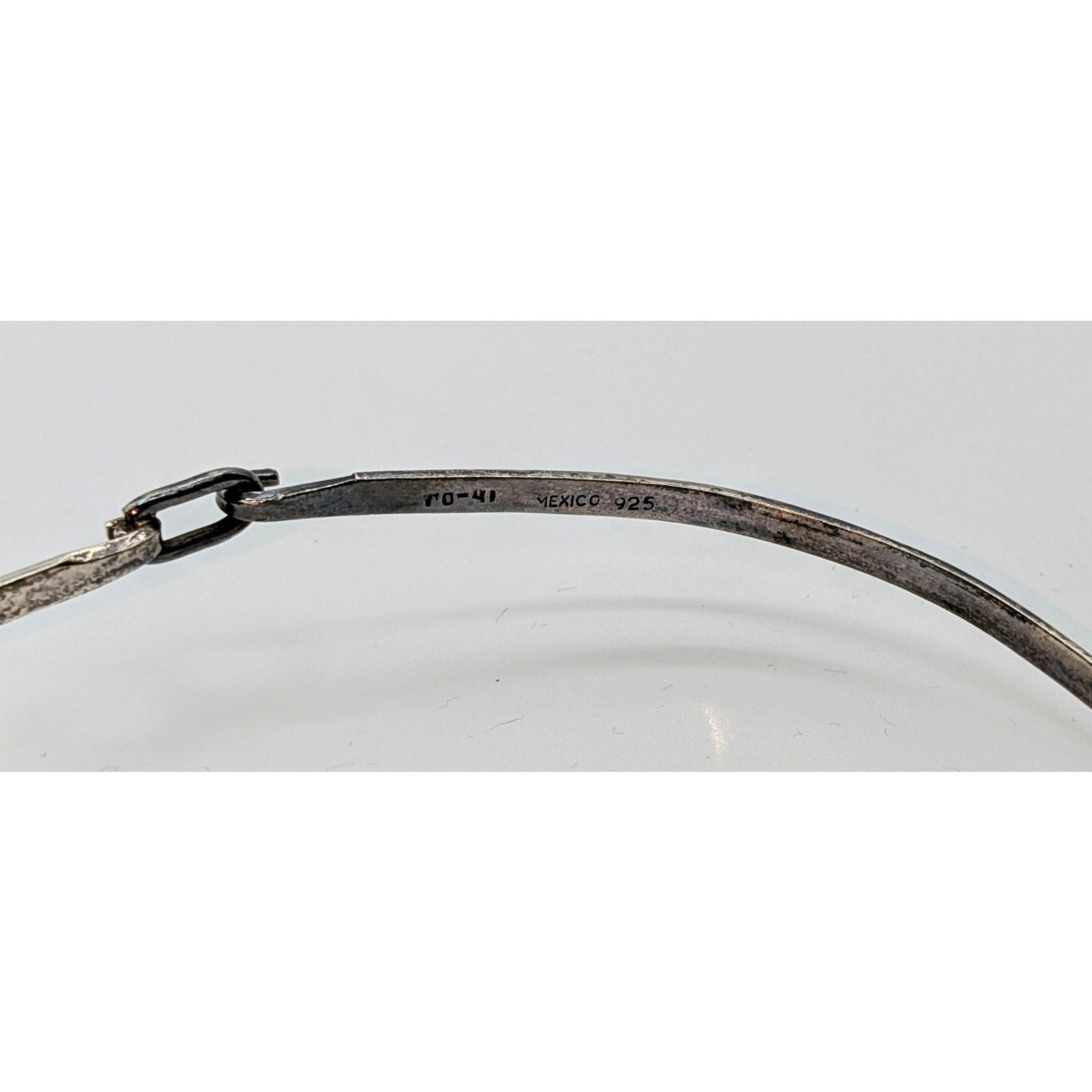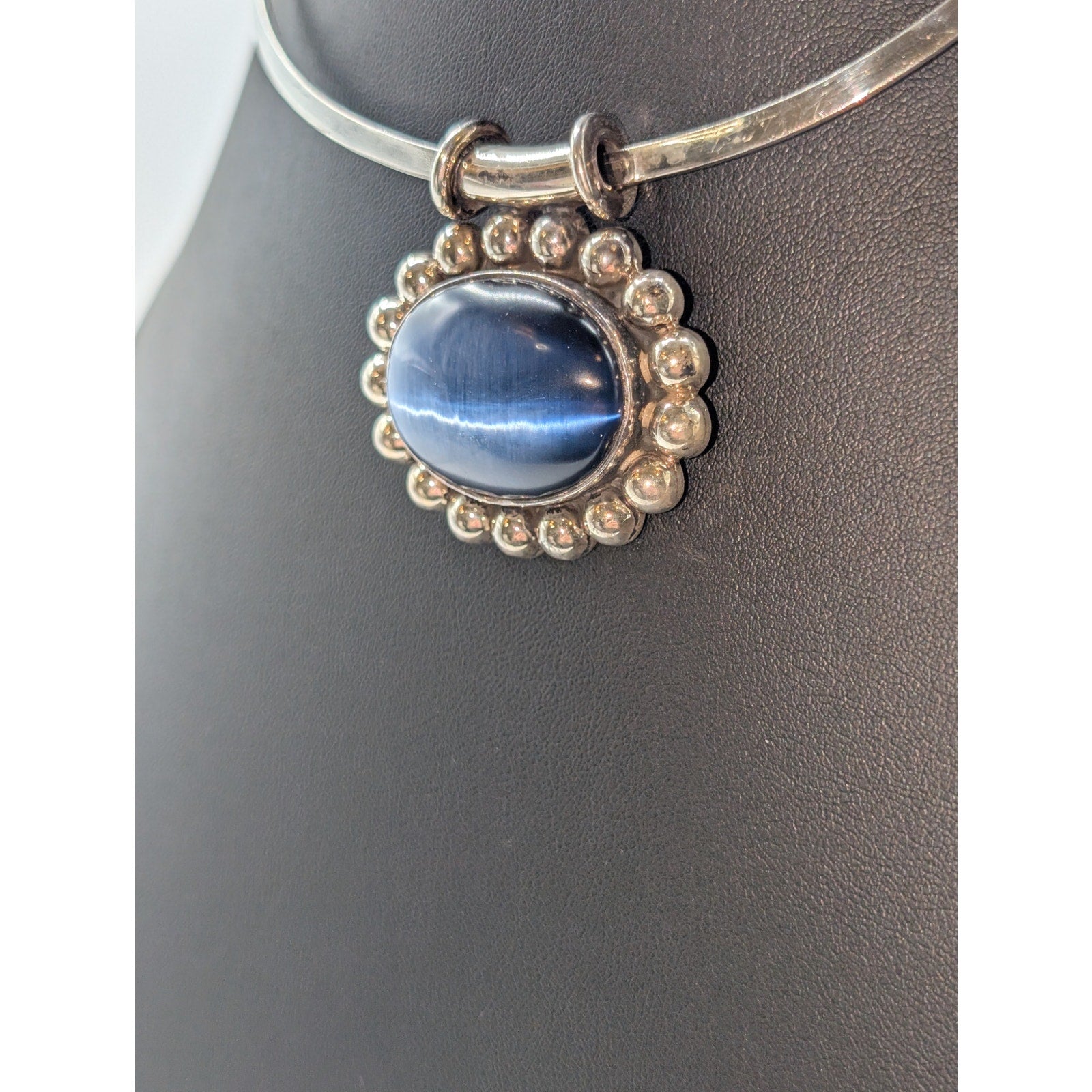 Vintage Taxco Large Blue Cat's Eye 950 Silver Pendant on Sterling Taxco Torque