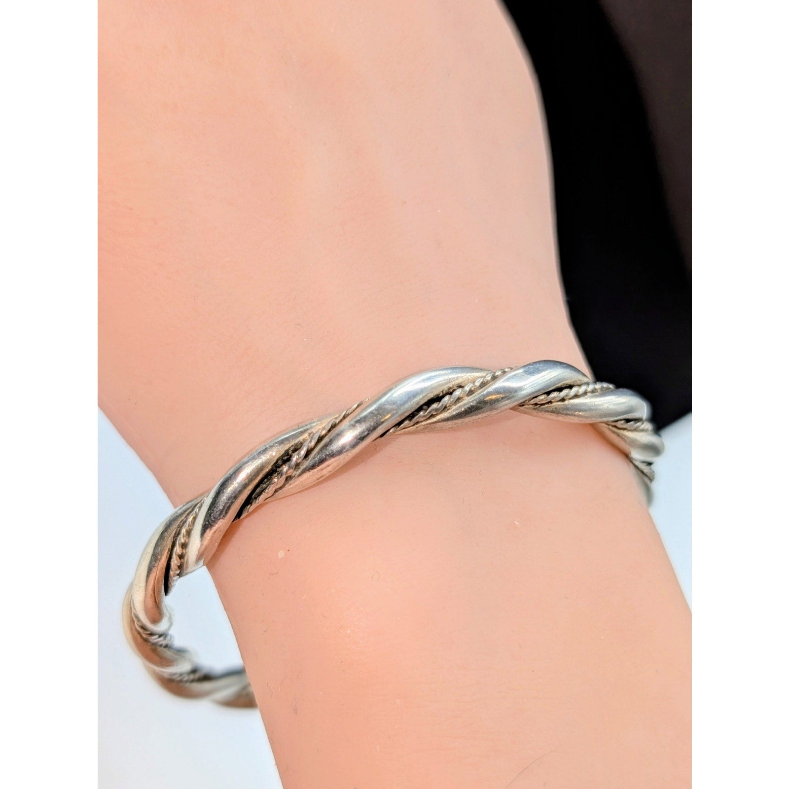 Vintage Unmarked Tested 925 Sterling Silver Twisted Bangle Bracelet