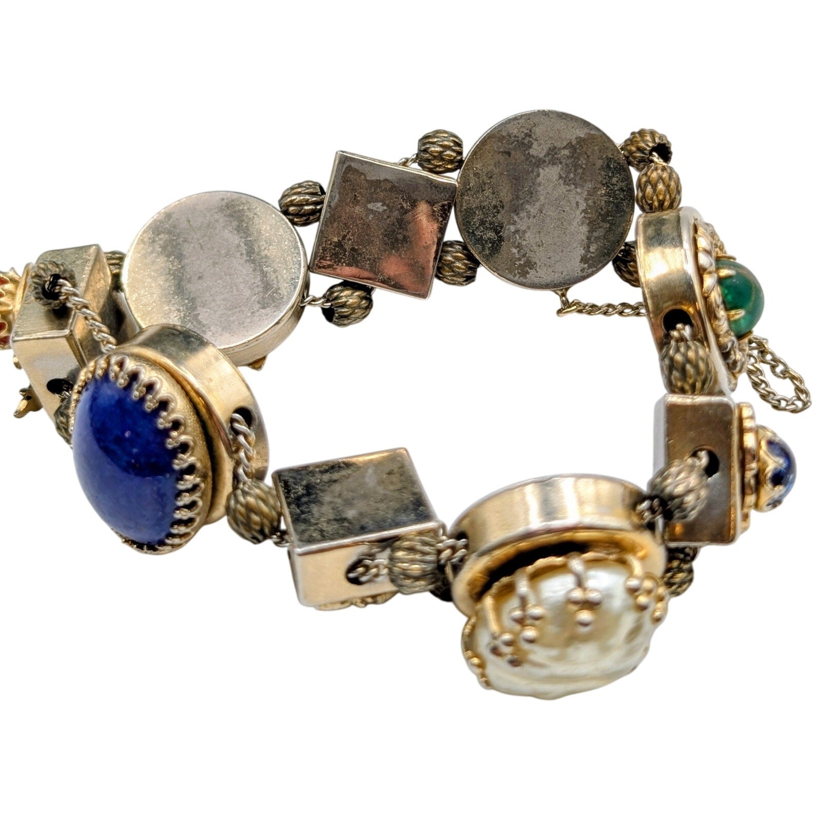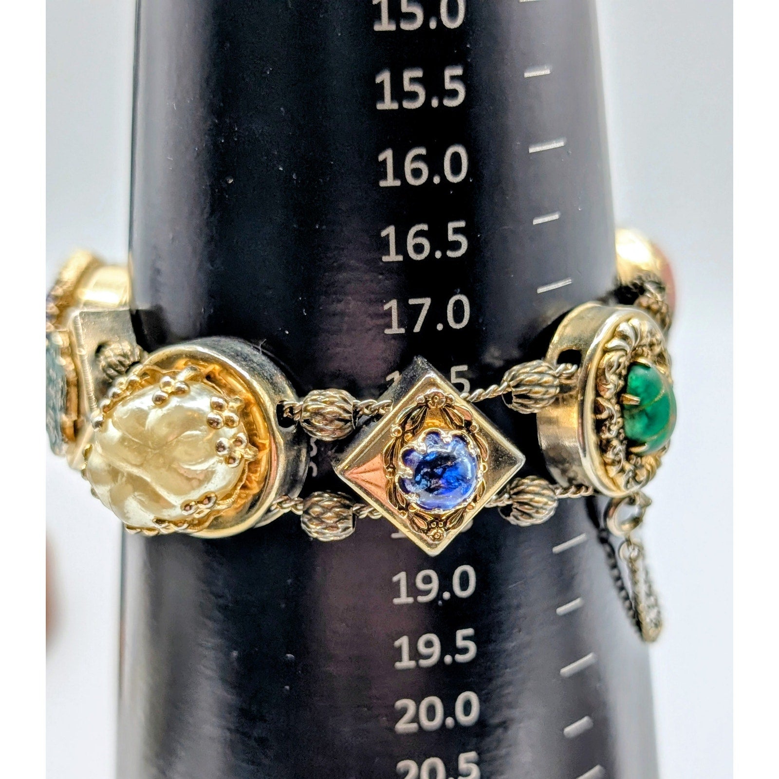 Vintage Victorian Sliding Moveable Charm Muted Gold Tone Bracelet. Pre-owned, this bracelet is in good vintage condition. Most of the wear is on the back of the sliding charms as seen in the photos.