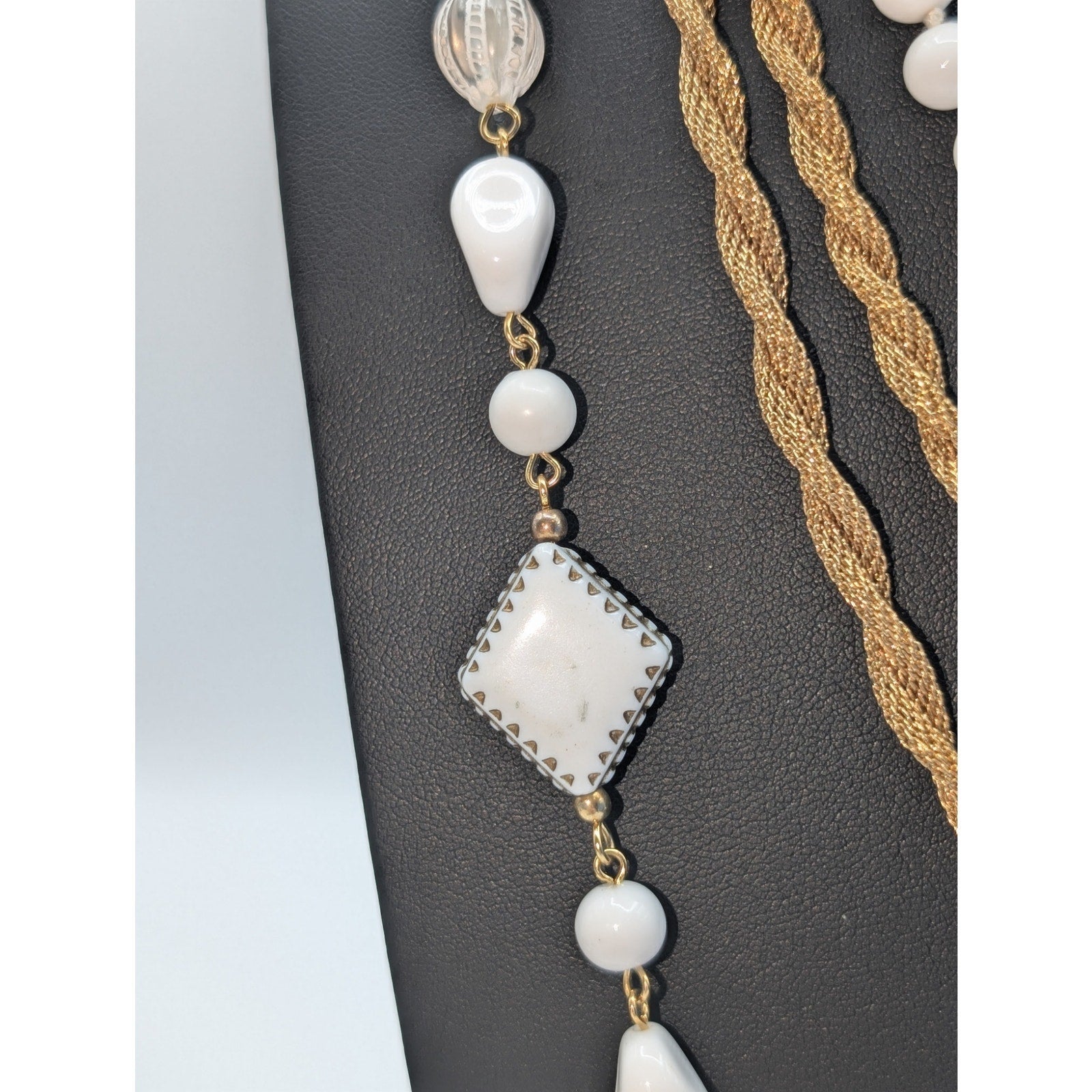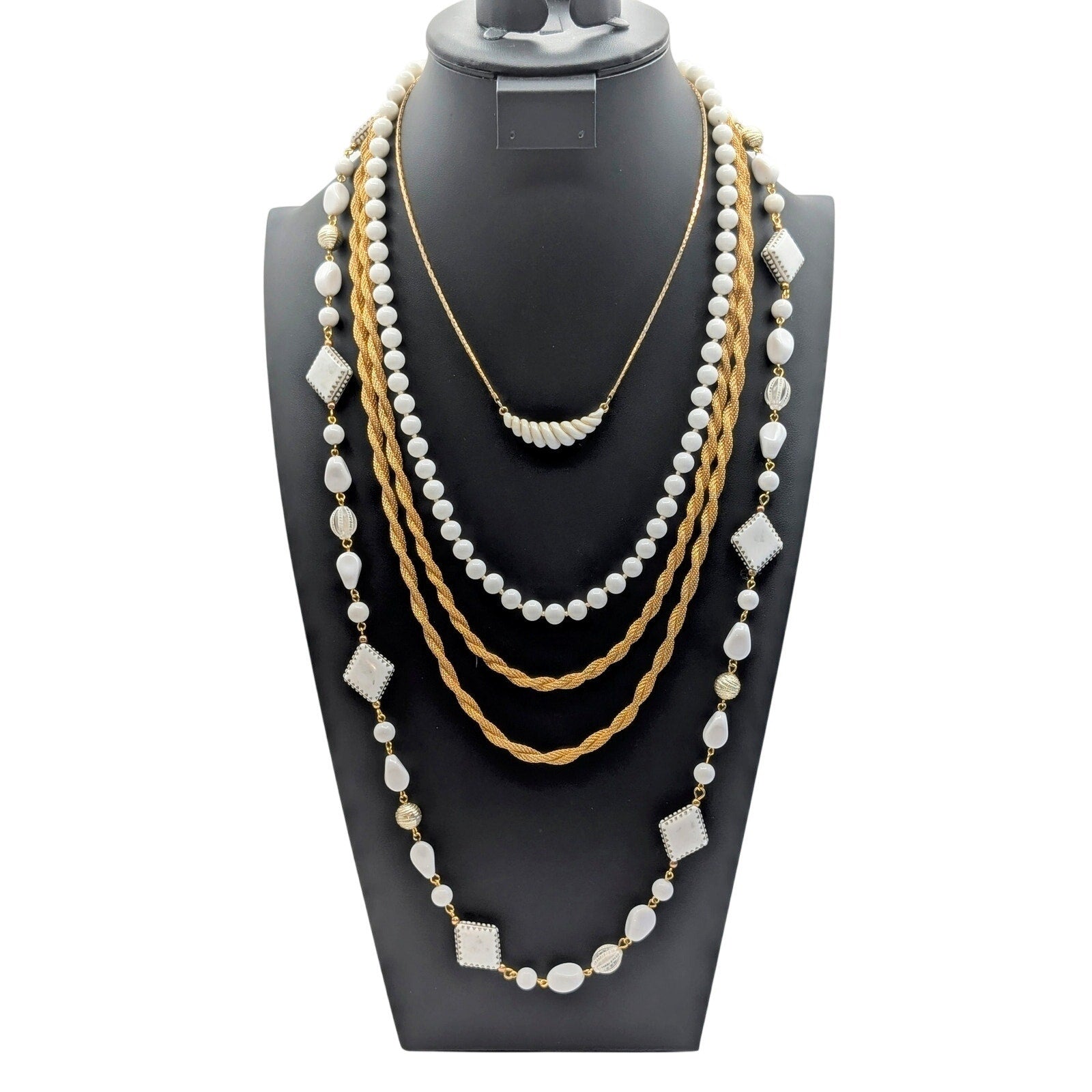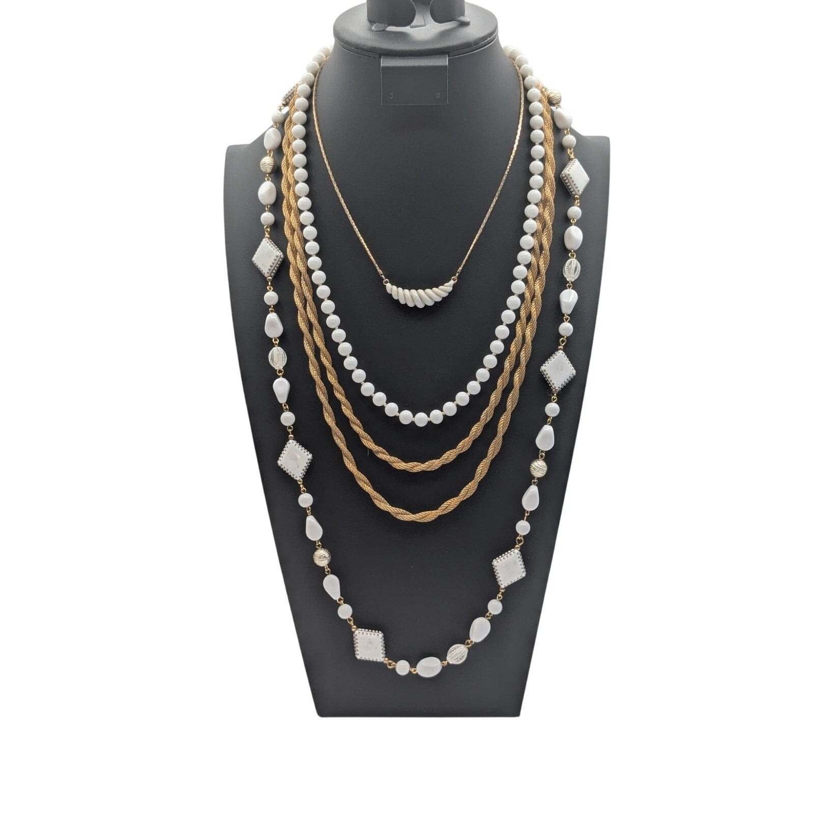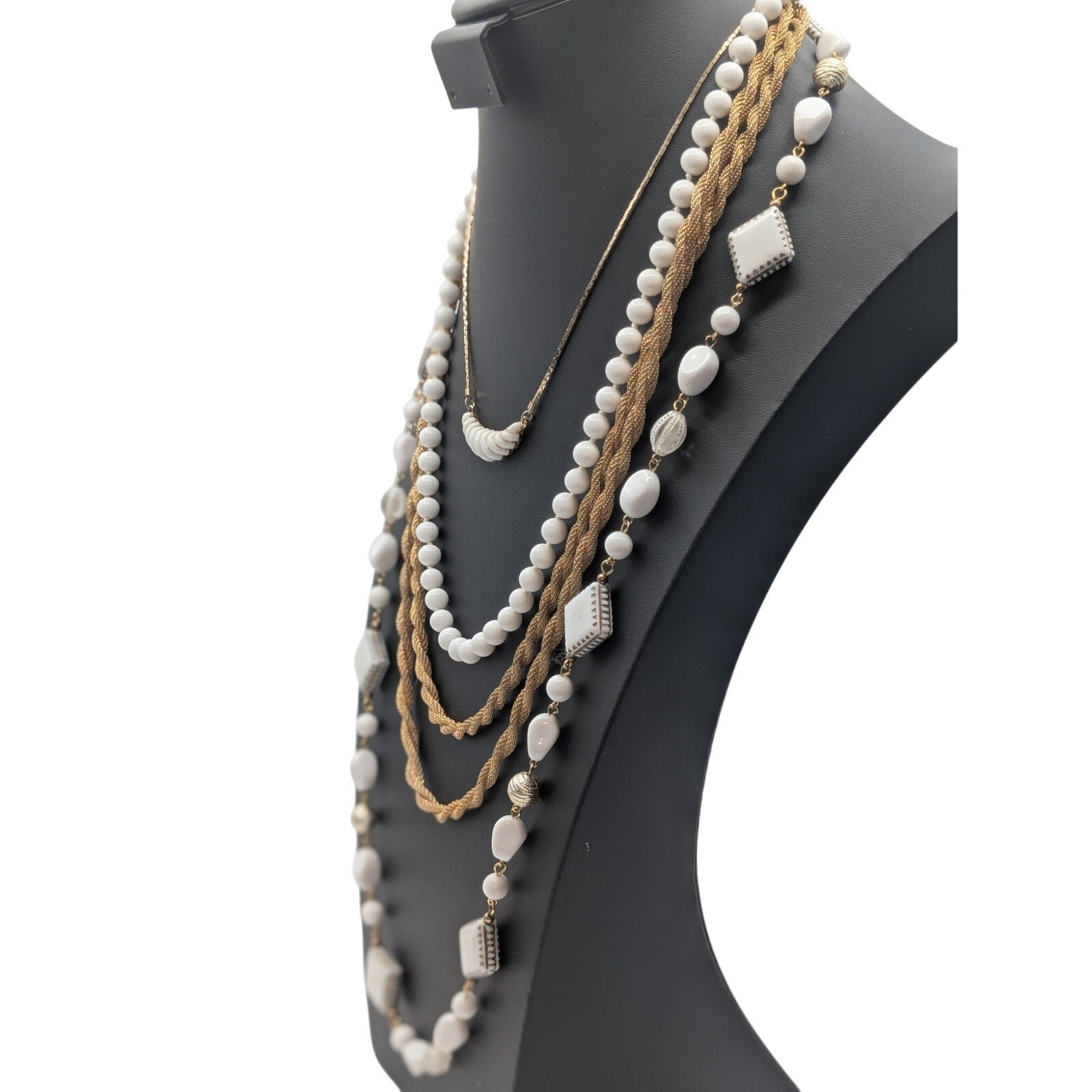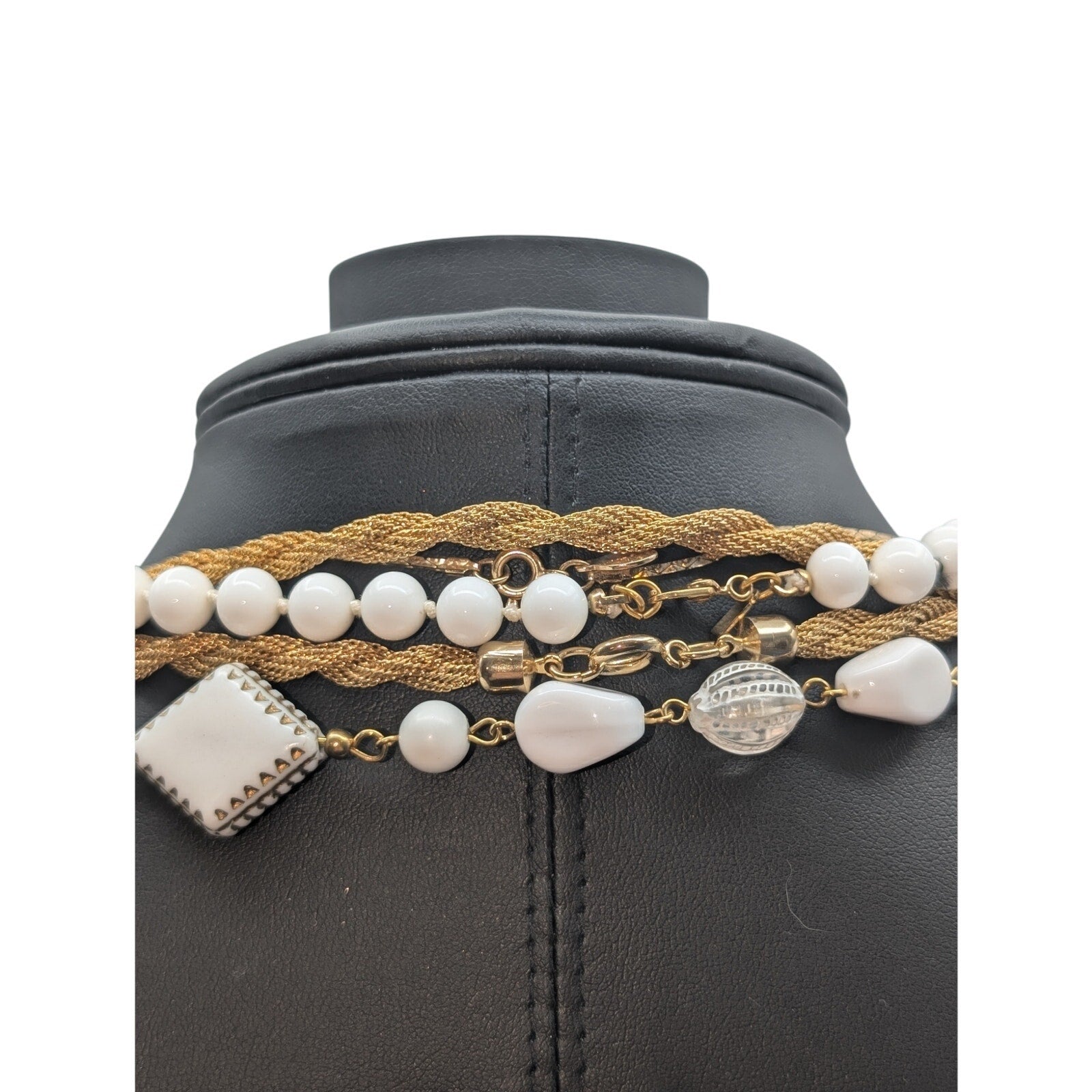 Vintage White & Gold Layered Necklace Jewelry Lot