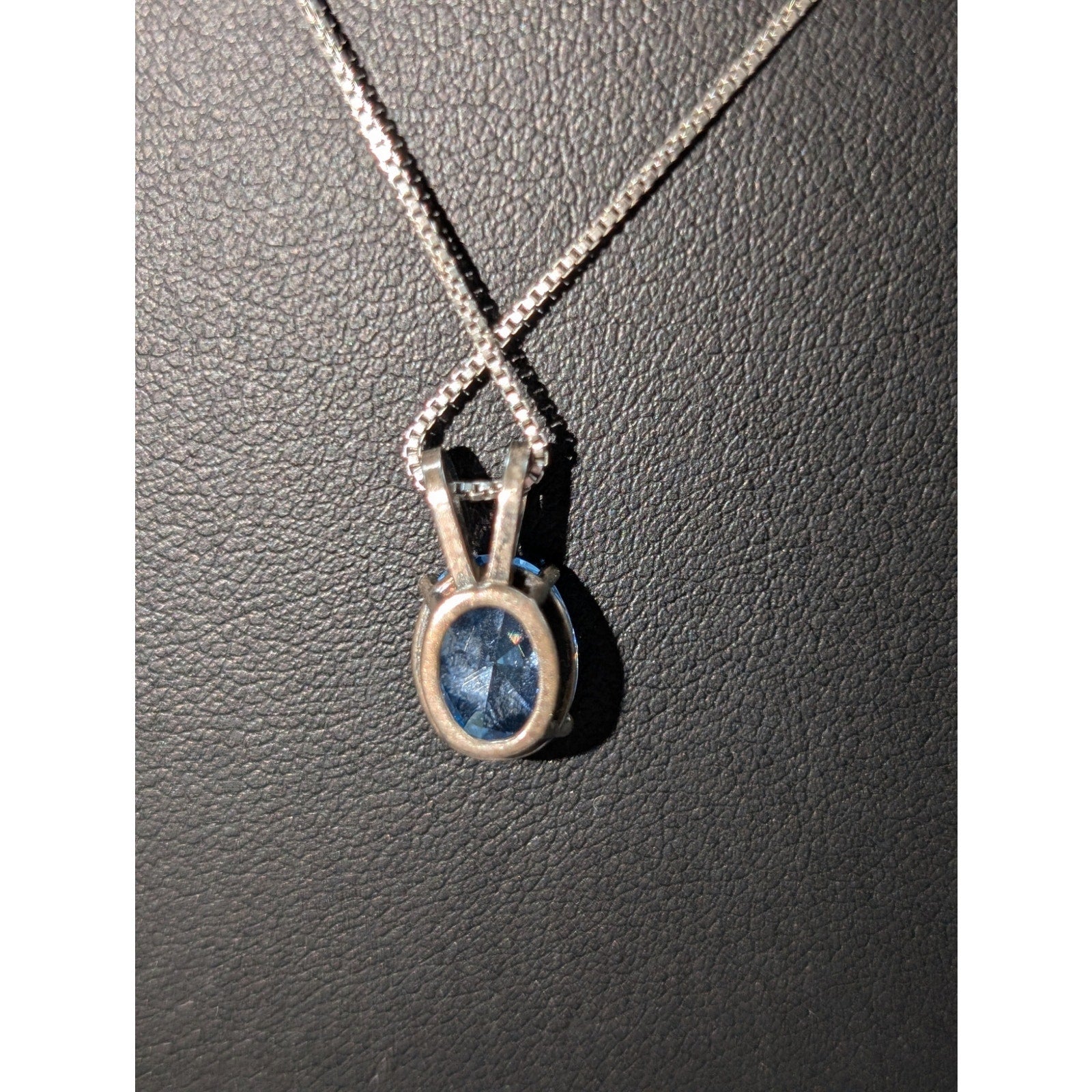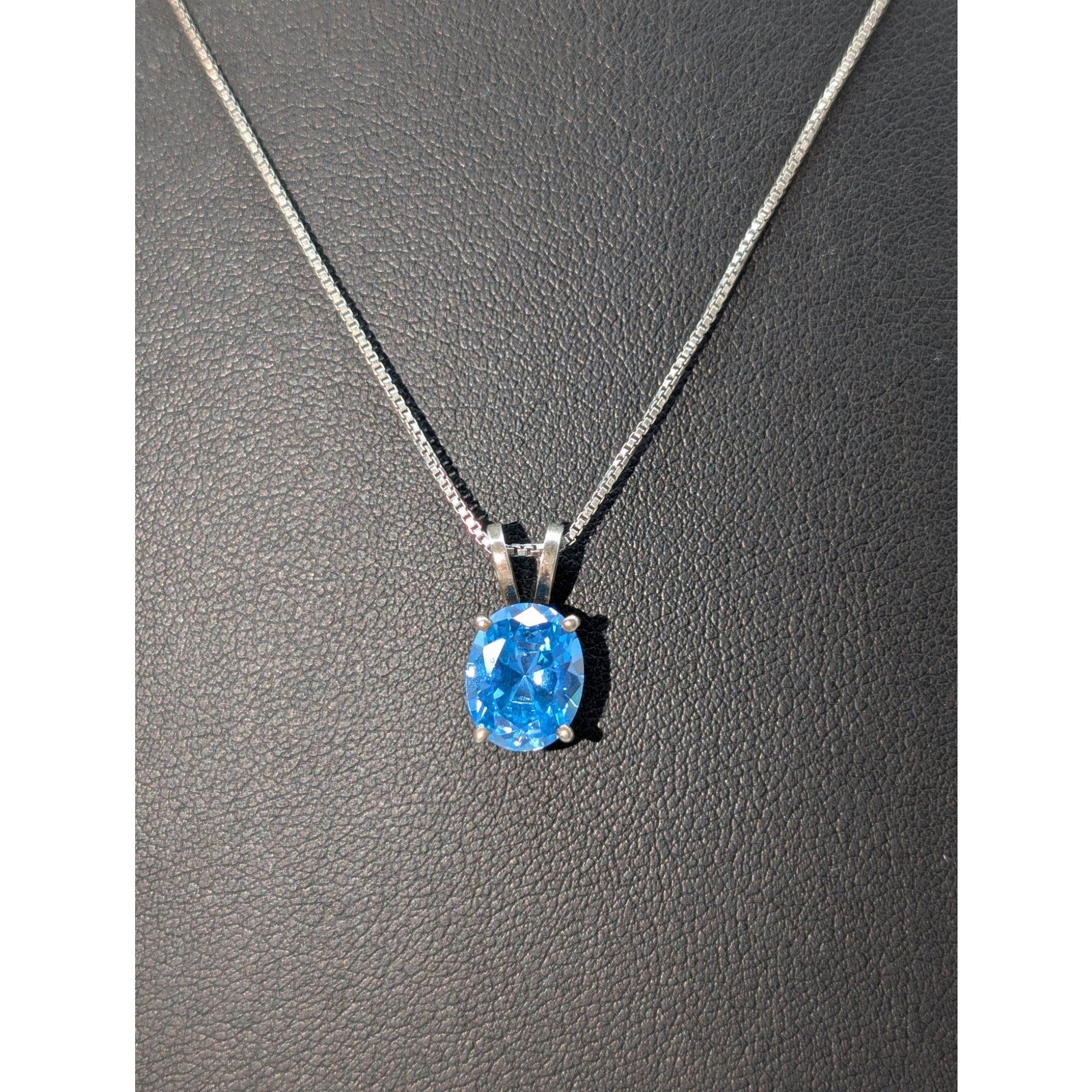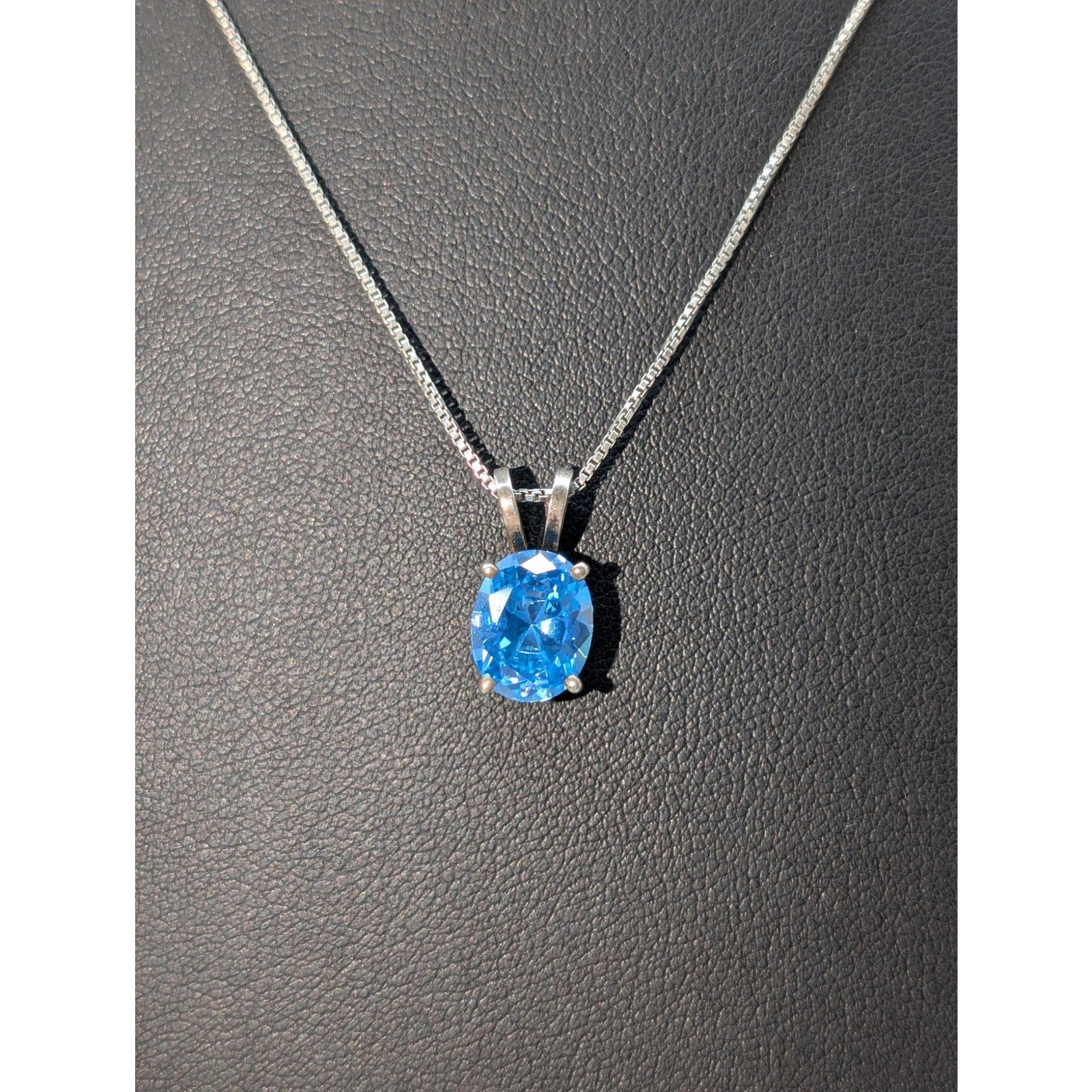 Vtg 925 Sterling Silver Brilliant Blue Crystal Solitaire Pendant Box Chain 18.75" Necklace. Pre-owned, this necklace is in excellent vintage condition.