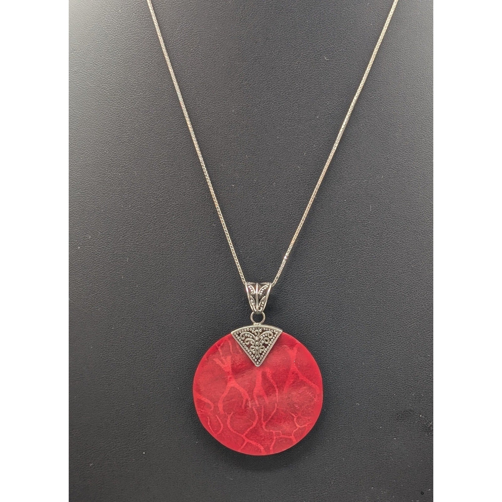 Vtg 925 Sterling Silver Bali Design Red Sponge Coral Pendant Box Chain 20" Necklace. Pre-owned, this necklace is in excellent condition.