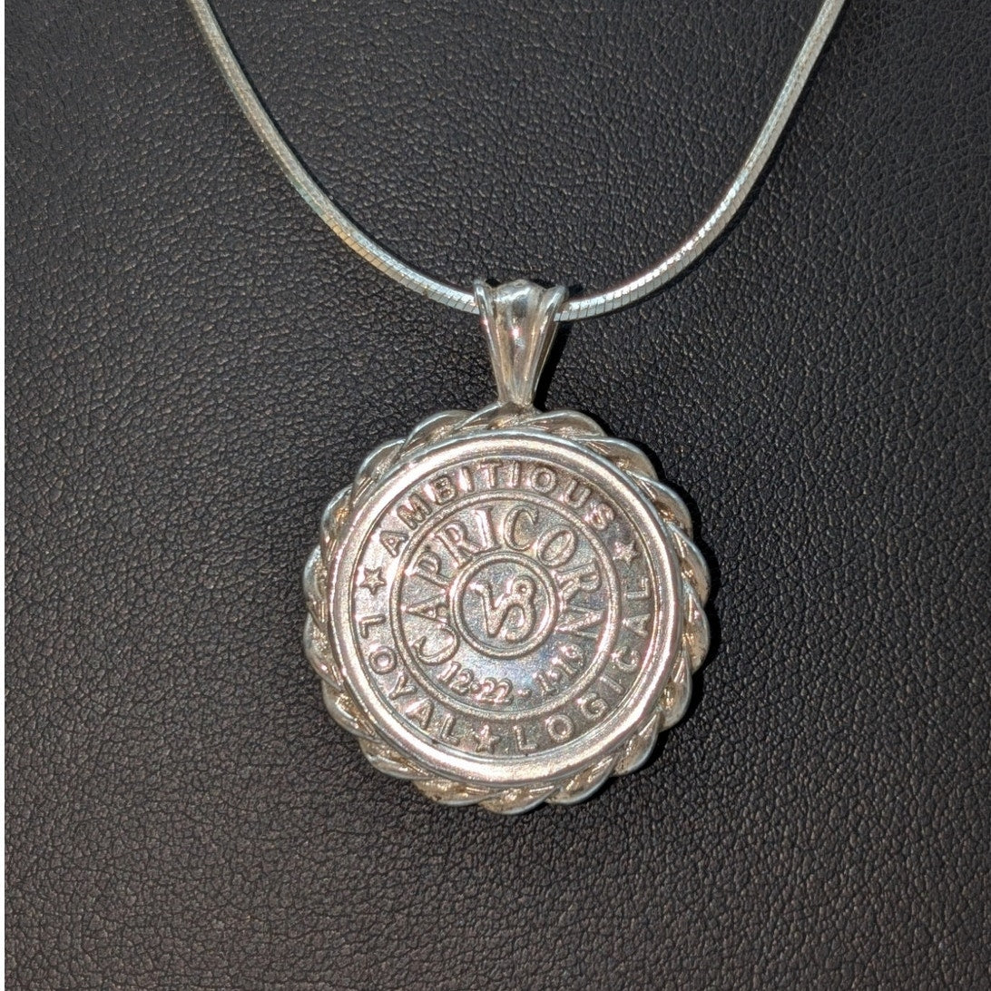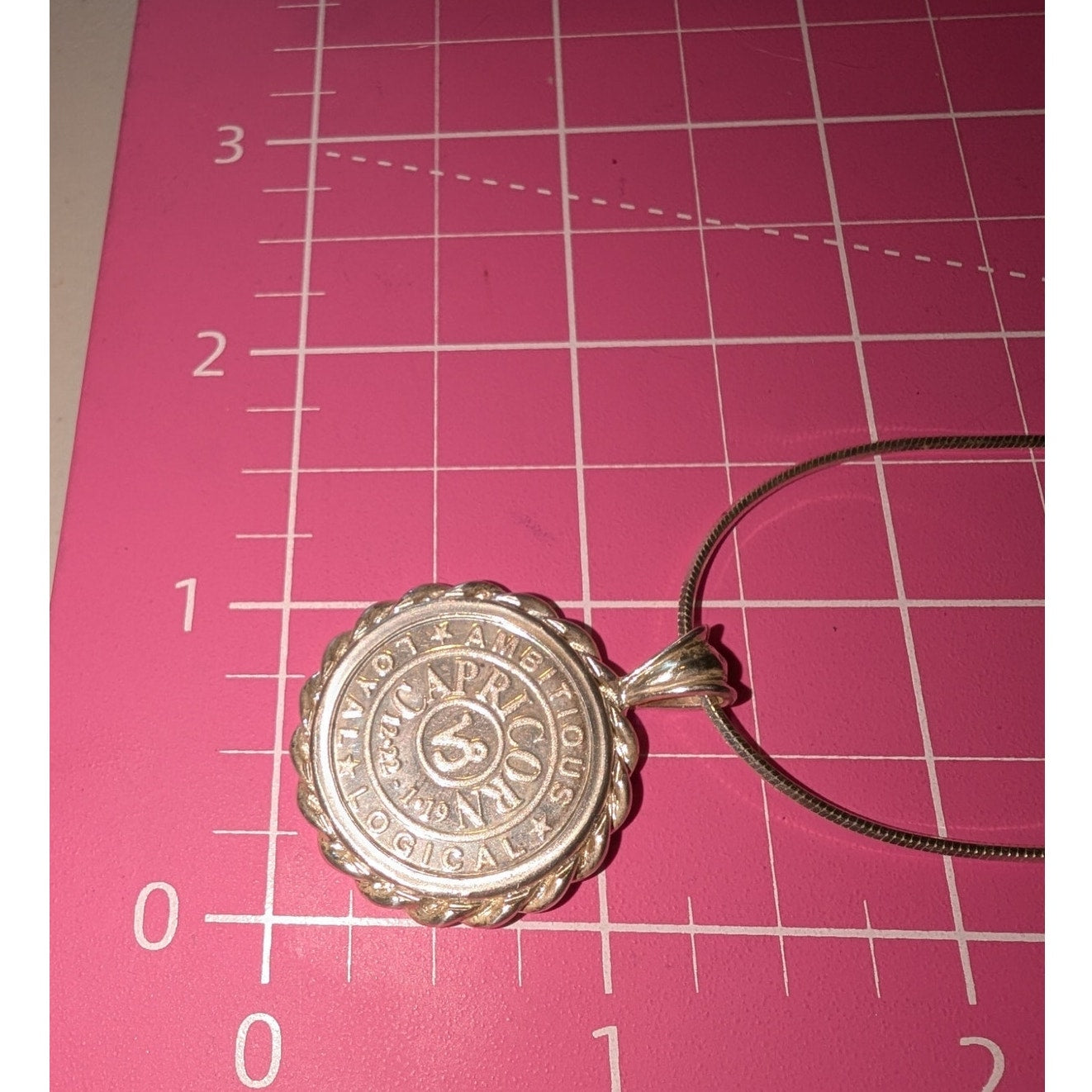 Vtg 925 Sterling Silver Rope Surround Capricorn Two-Sided Coin Pendant 20" Necklace. Pre-owned, this necklace is in excellent condition.