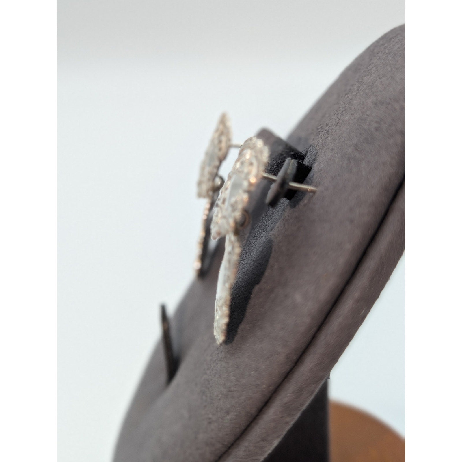 VTG Art Nouveau 925 Sterling Silver Doorknocker Embossed Ornate Drop Earrings. Luggage tag look. Pre-owned, these earrings are in excellent vintage condition.