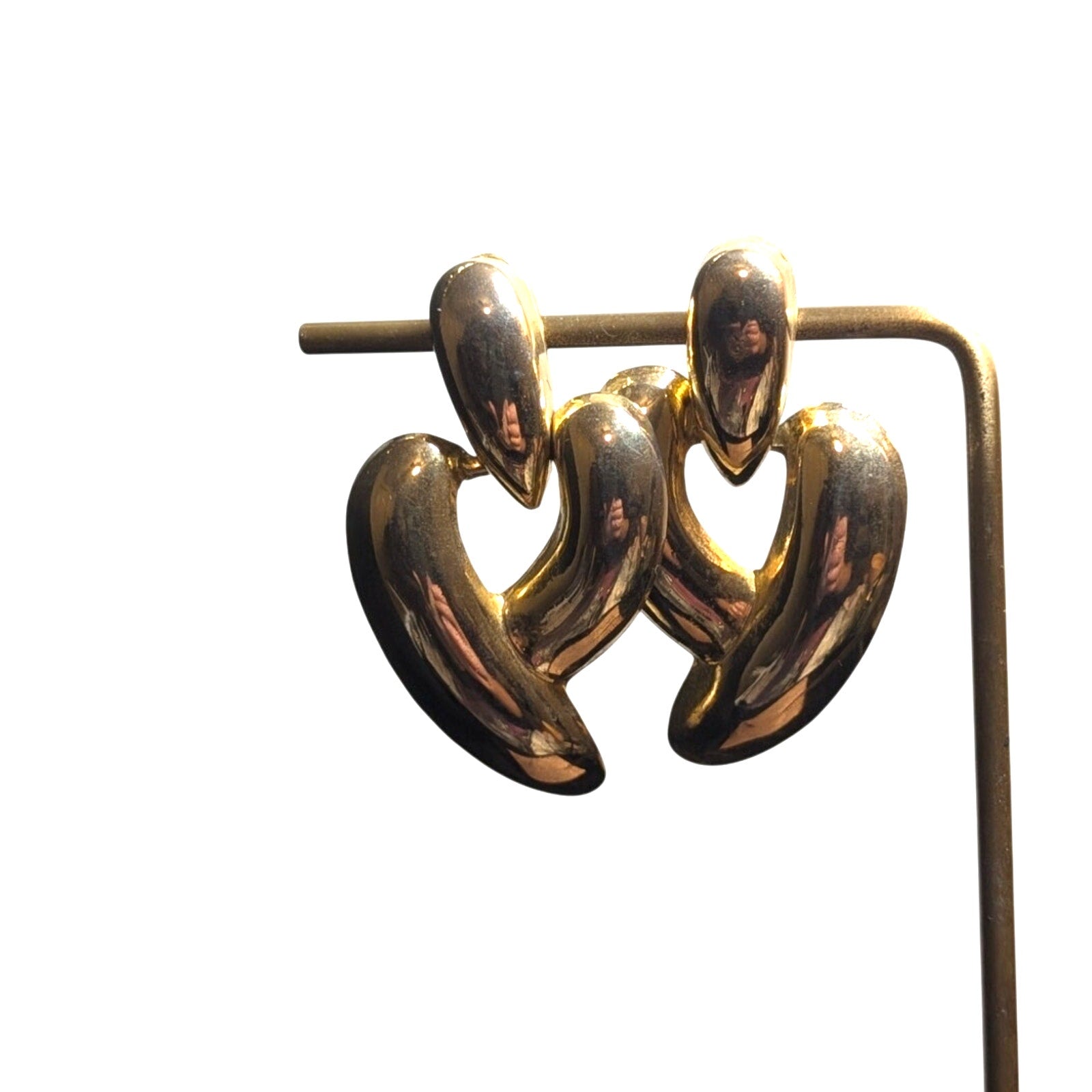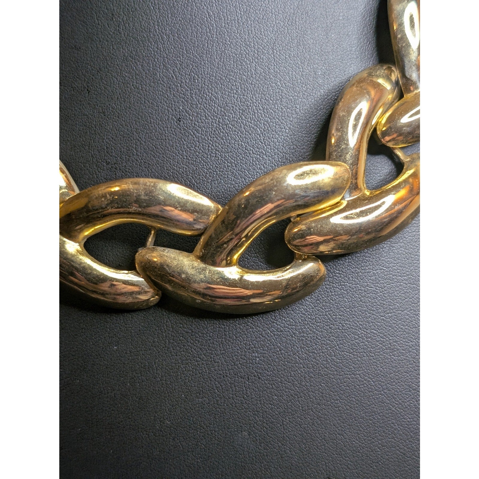 VTG Chunky Polished Gold Tone Y Choker Necklace & Matching Door Knocker Earrings