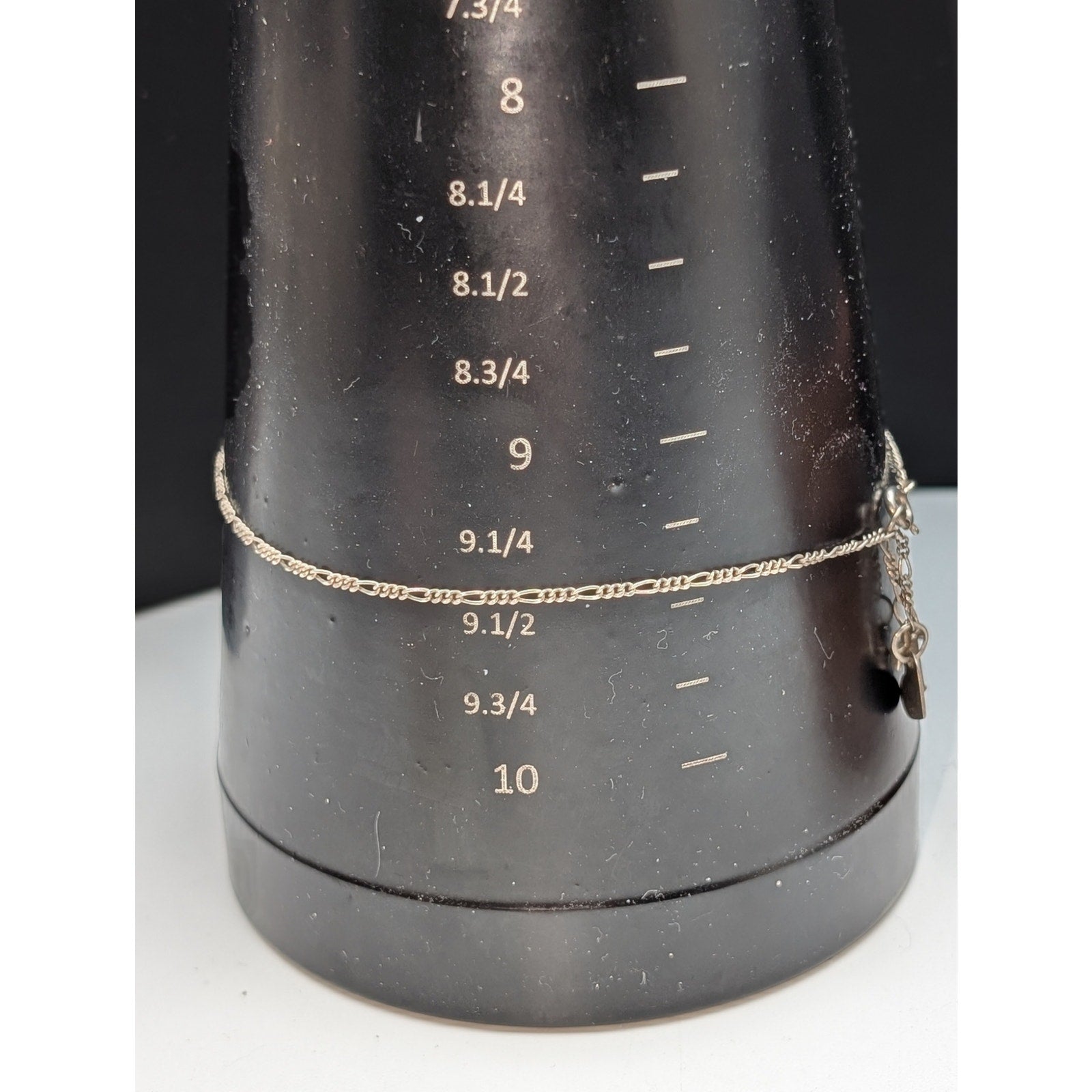 Vtg Dainty 925 Sterling Silver Figaro Chain Heart & Rhinestone 'T' Charm Anklet. Pre-owned, this ankle bracelet is in excellent vintage condition. The bracelet is marked 925 but the charms are not. The heart has Avon RJ on it. The charms are not magnetic.