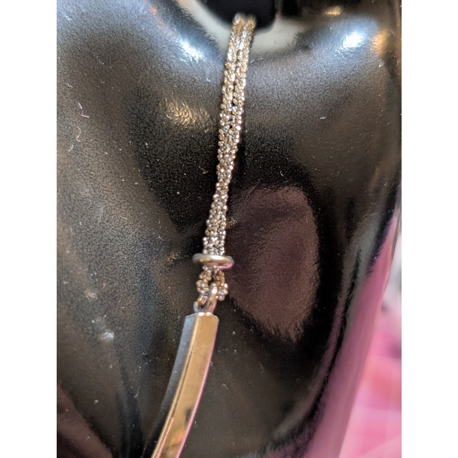 VTG Dyadema 925 Italy Sterling Silver Crystal Bar Chain Bracelet 7"-8" Long. Curved Bar W/ Embedded Crystal and double chain with lobster claw clasp. Pre-owned, this bracelet is in excellent condition.