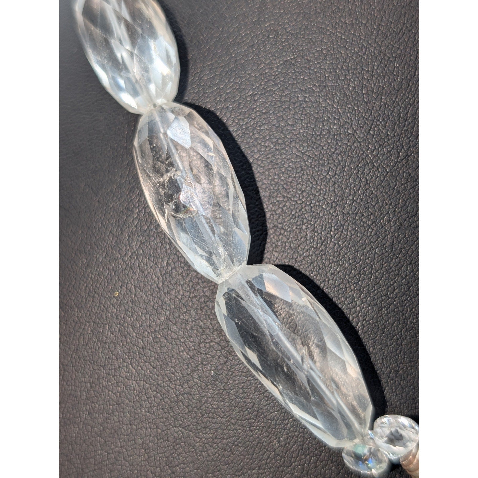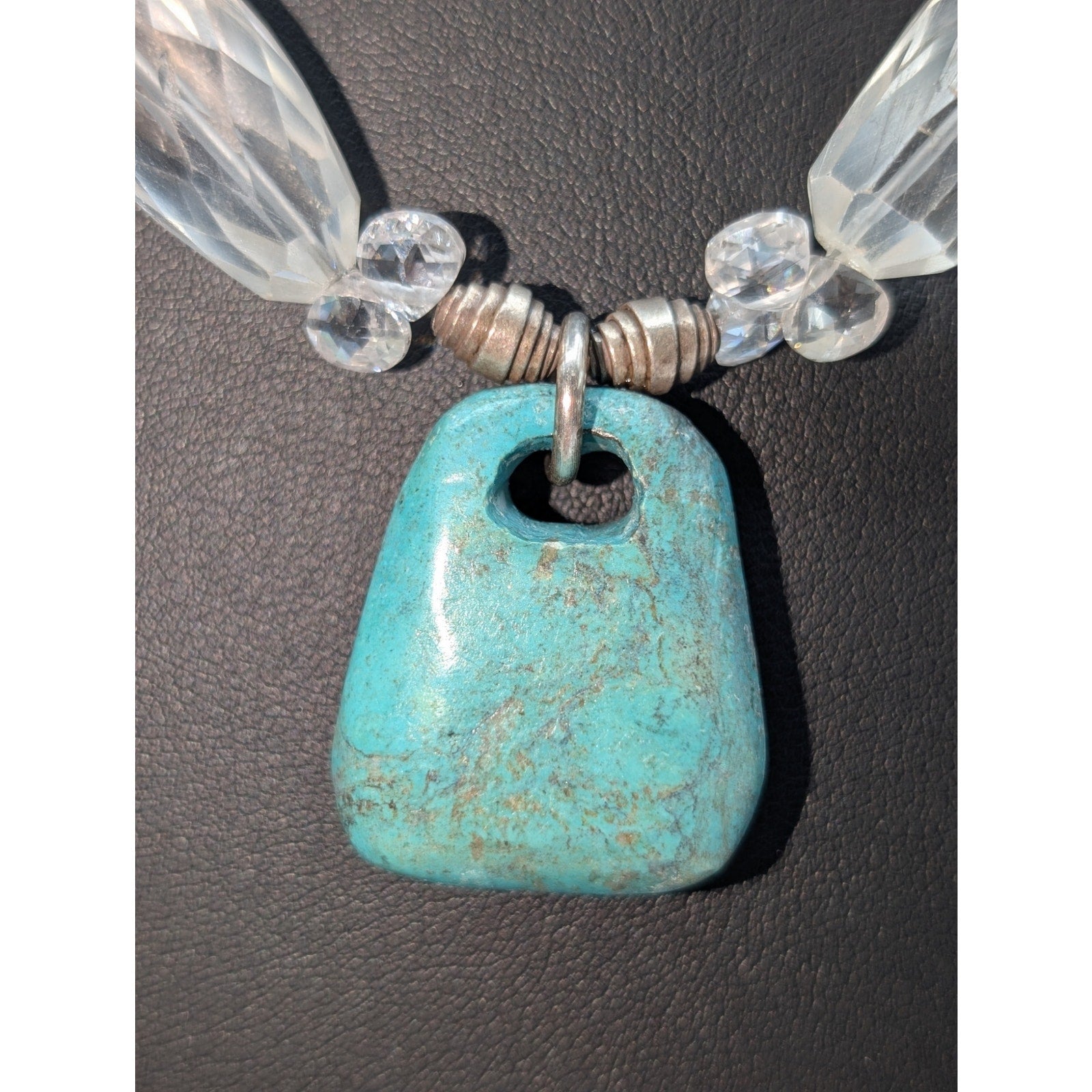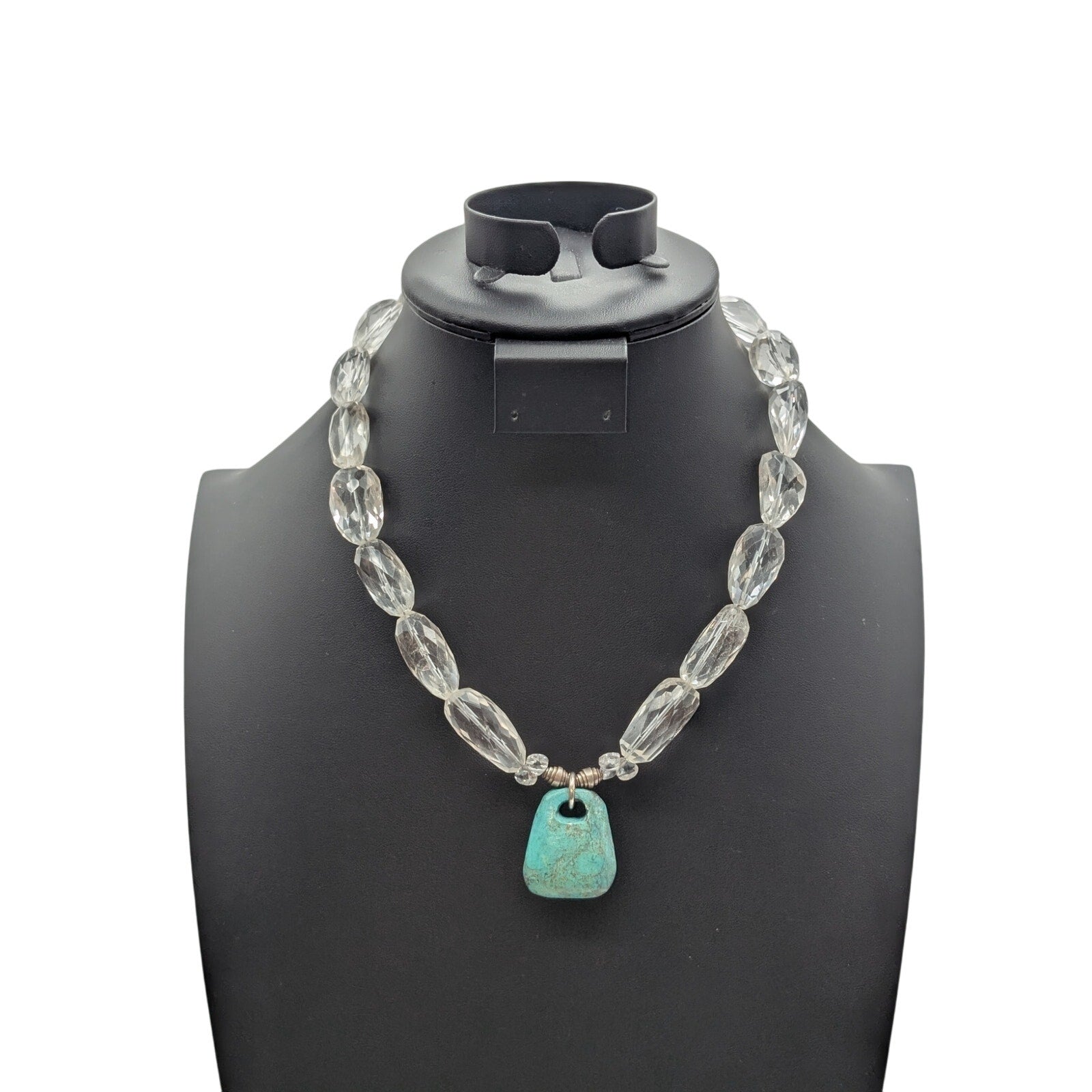 Vtg Faceted Rock Quartz Crystal 925 Sterling Silver Stone Pendant 17.25"-18.25" Necklace. Large Hook clasp. I believe this is turquoise, but I'm not sure how to test for turquoise. Pre-owned, this necklace is in excellent vintage condition.