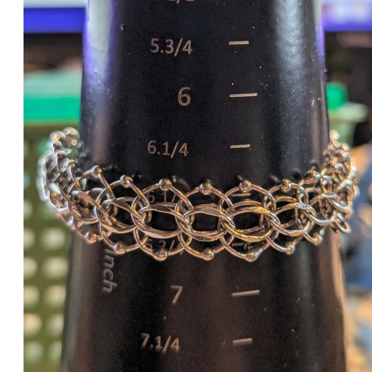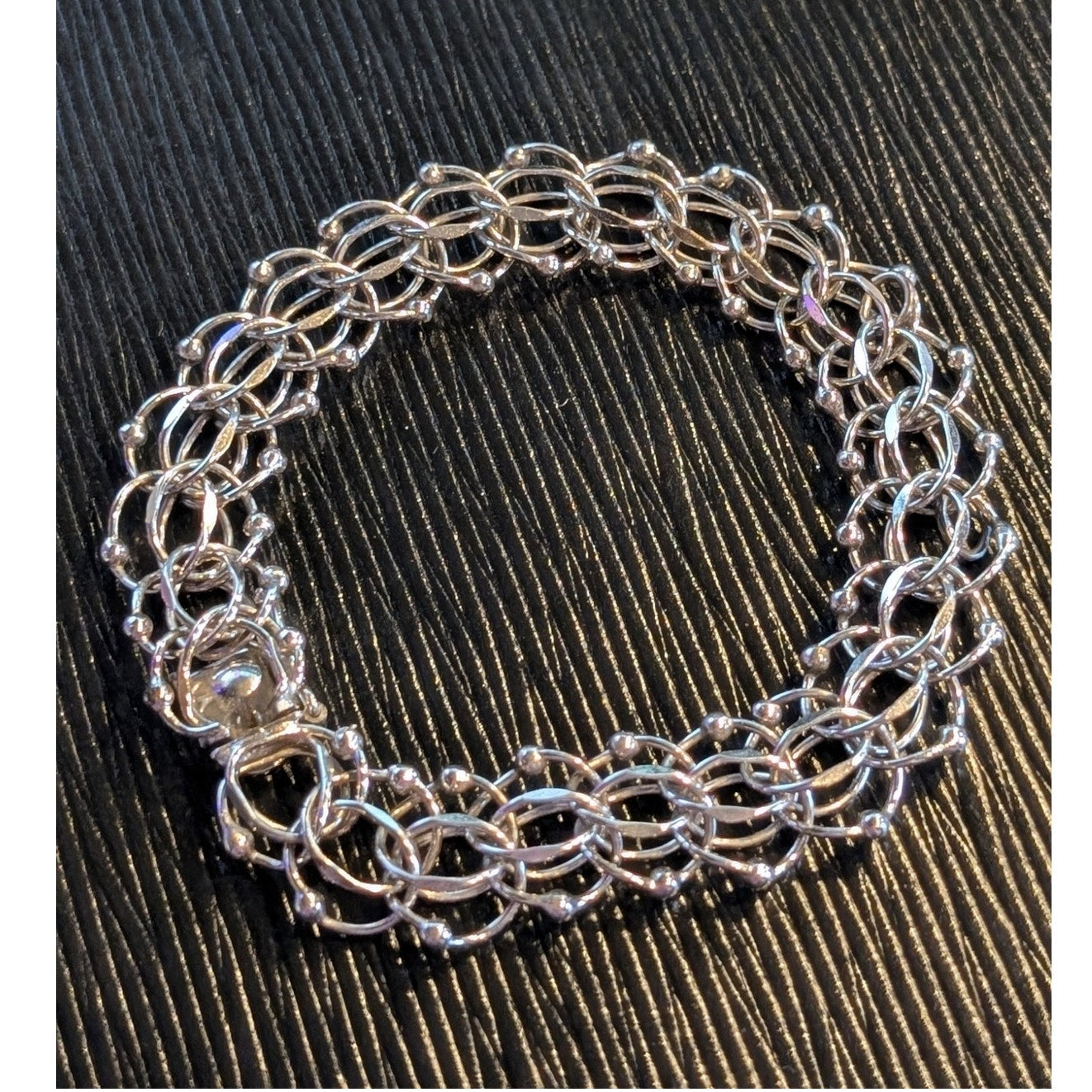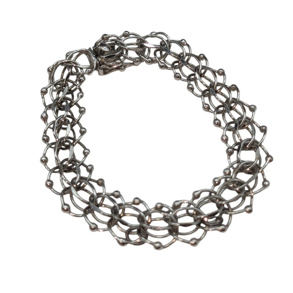 Vtg 50s-60s Griffith & Sons Co. (G With Arrow Through) Sterling Silver Charm Bracelet. Approximately 1/2" wide and 7-3/4" long. Pre-owned, this bracelet is in excellent vintage condition. One safety latch with a slide in clasp. Both work well.