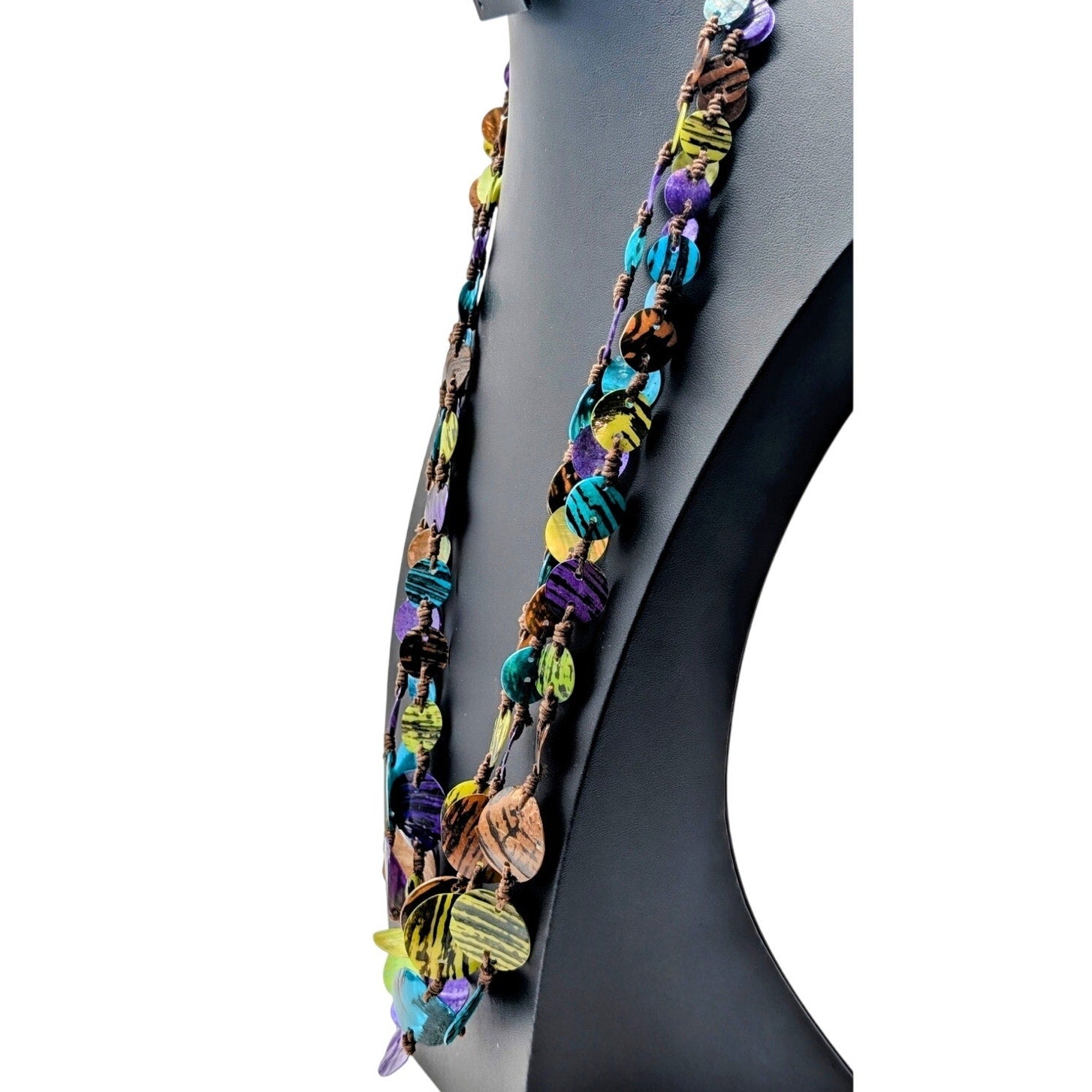 VTG Hand Strung Multi-Color Graduated Stripe Shell Corded Slip Over Necklace
