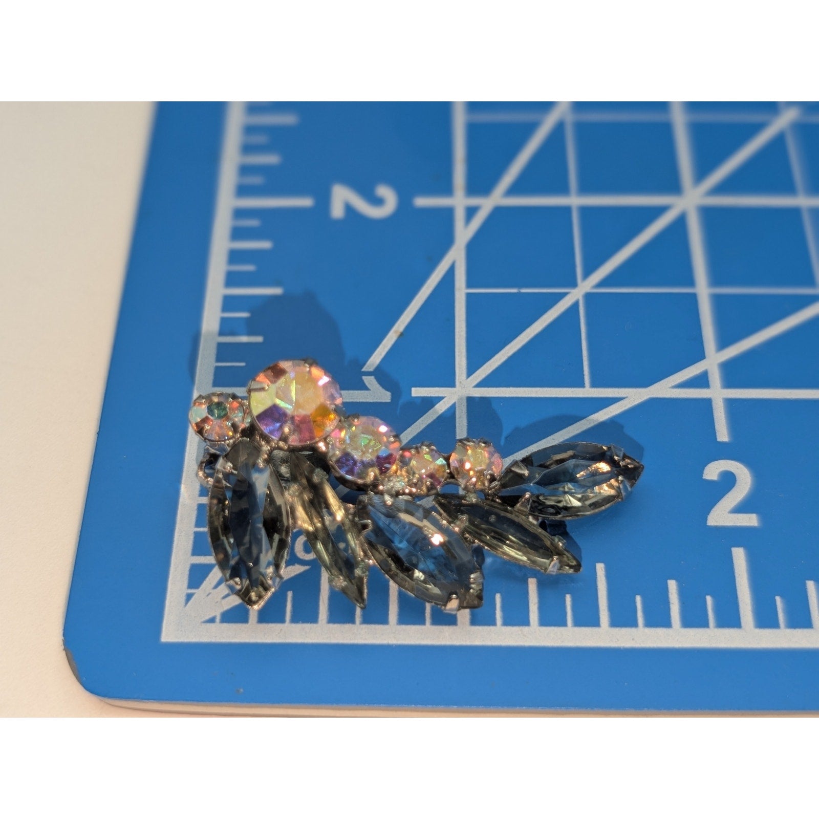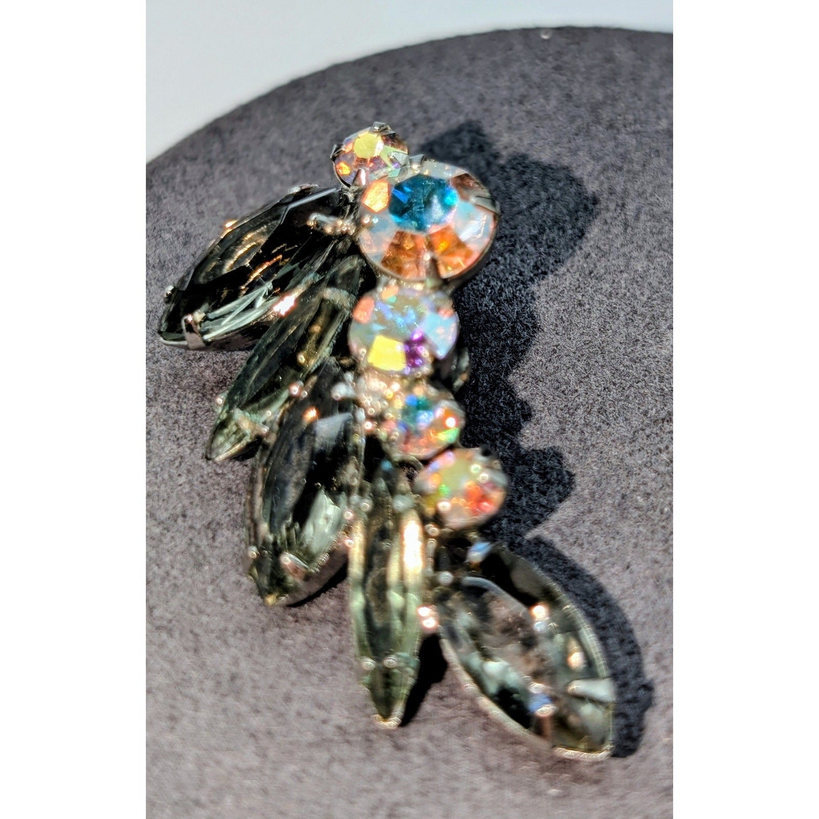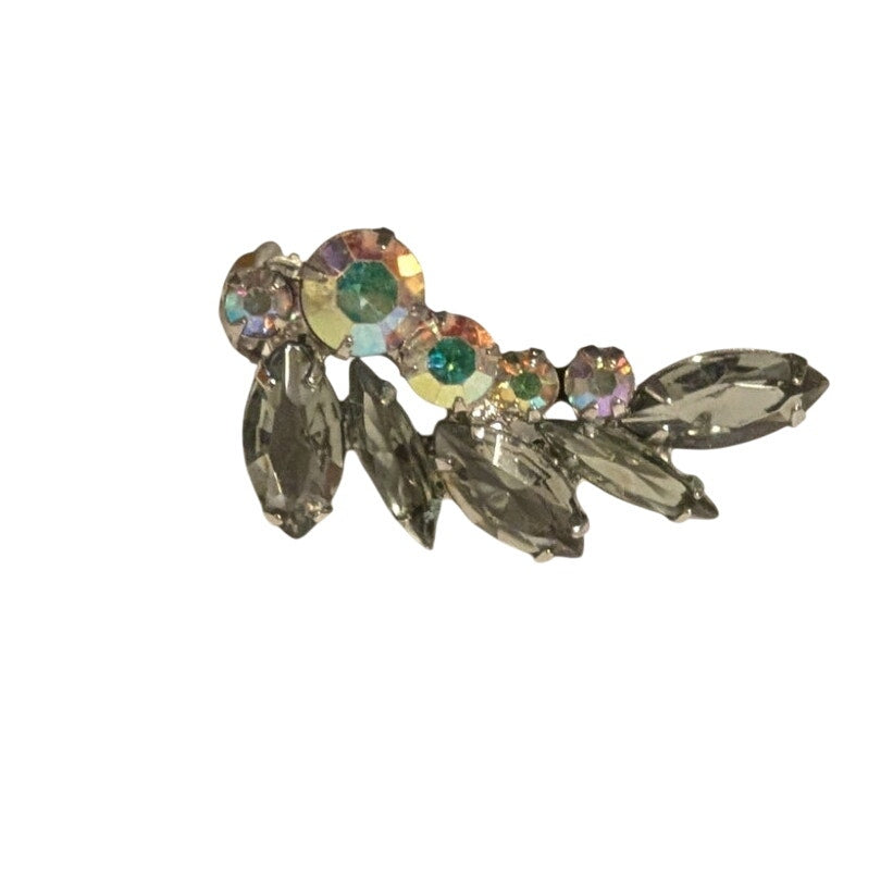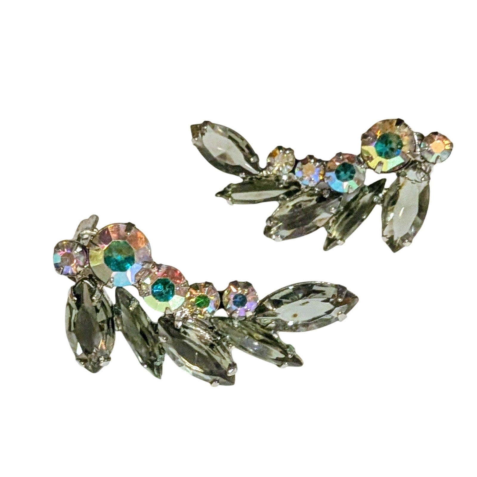 VTG Julianna Smoky Gray Marquis & Round Aurora Borealis Rhinestone Clip Earrings