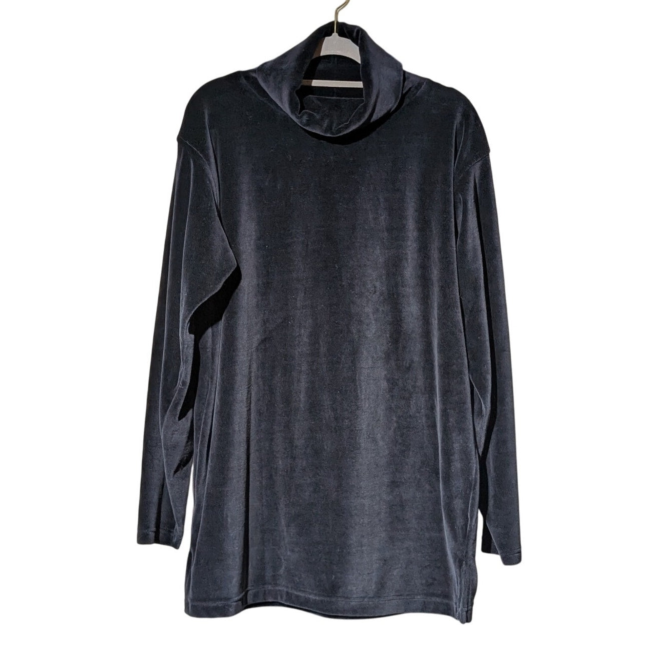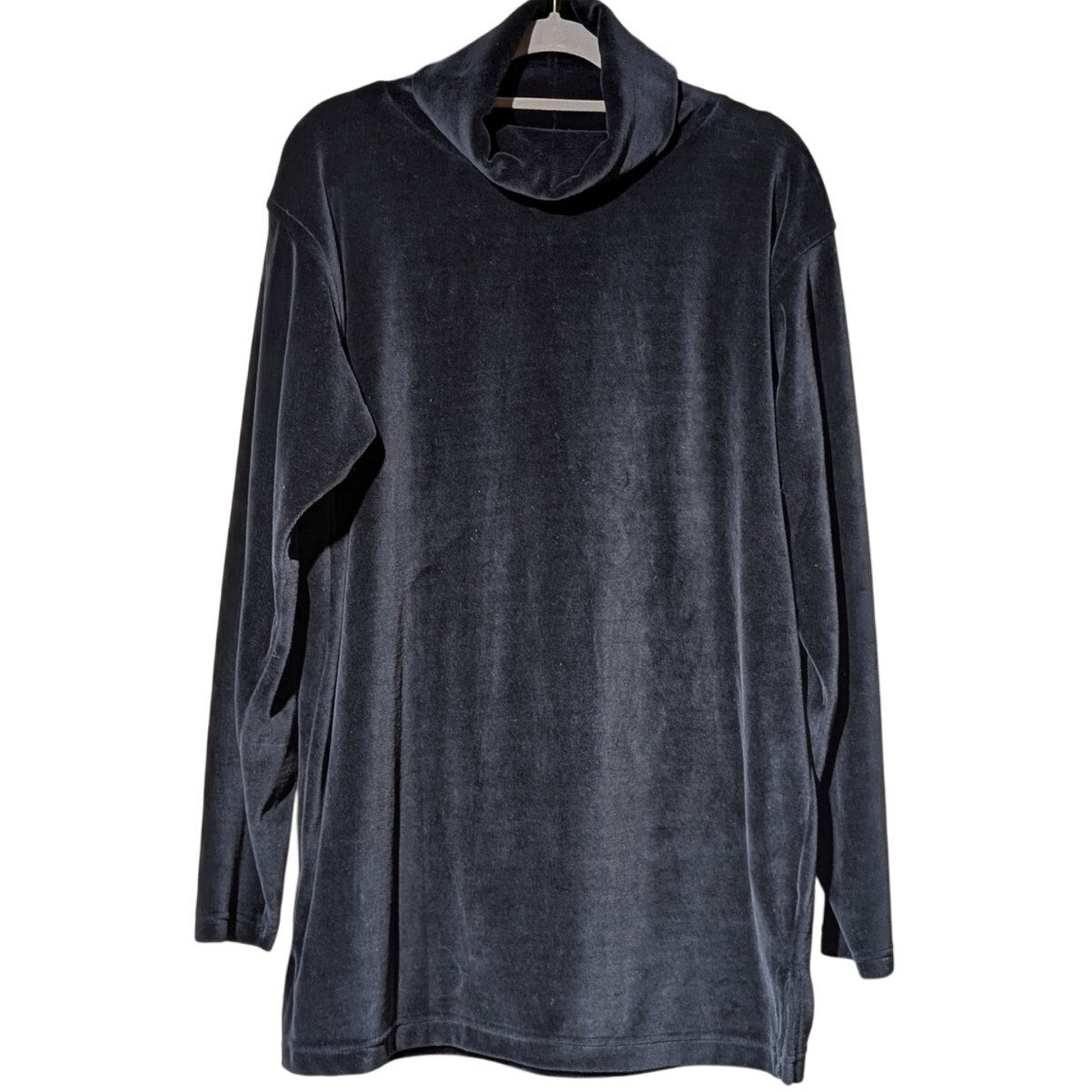 Vtg LizSport Black Velvet/Velour Turtle Neck Long Sleeve Oversize Tunic Sz S