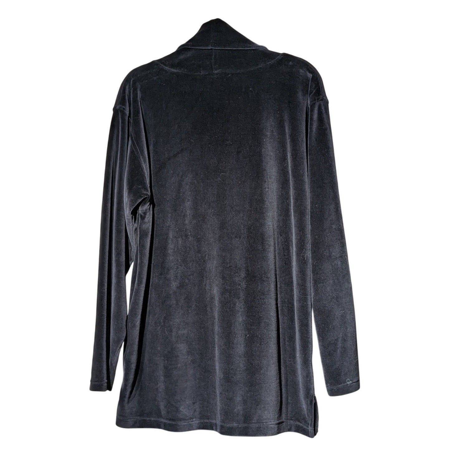 Vtg LizSport Black Velvet/Velour Relaxed Turtle Neck Long Sleeve Oversize Tunic Sz S. Pre-owned, this tunic is in excellent vintage condition. Sleeve length is 22" from shoulder. Tunic is 28" long from back. Side slits. Soft. Festive. Holiday.
