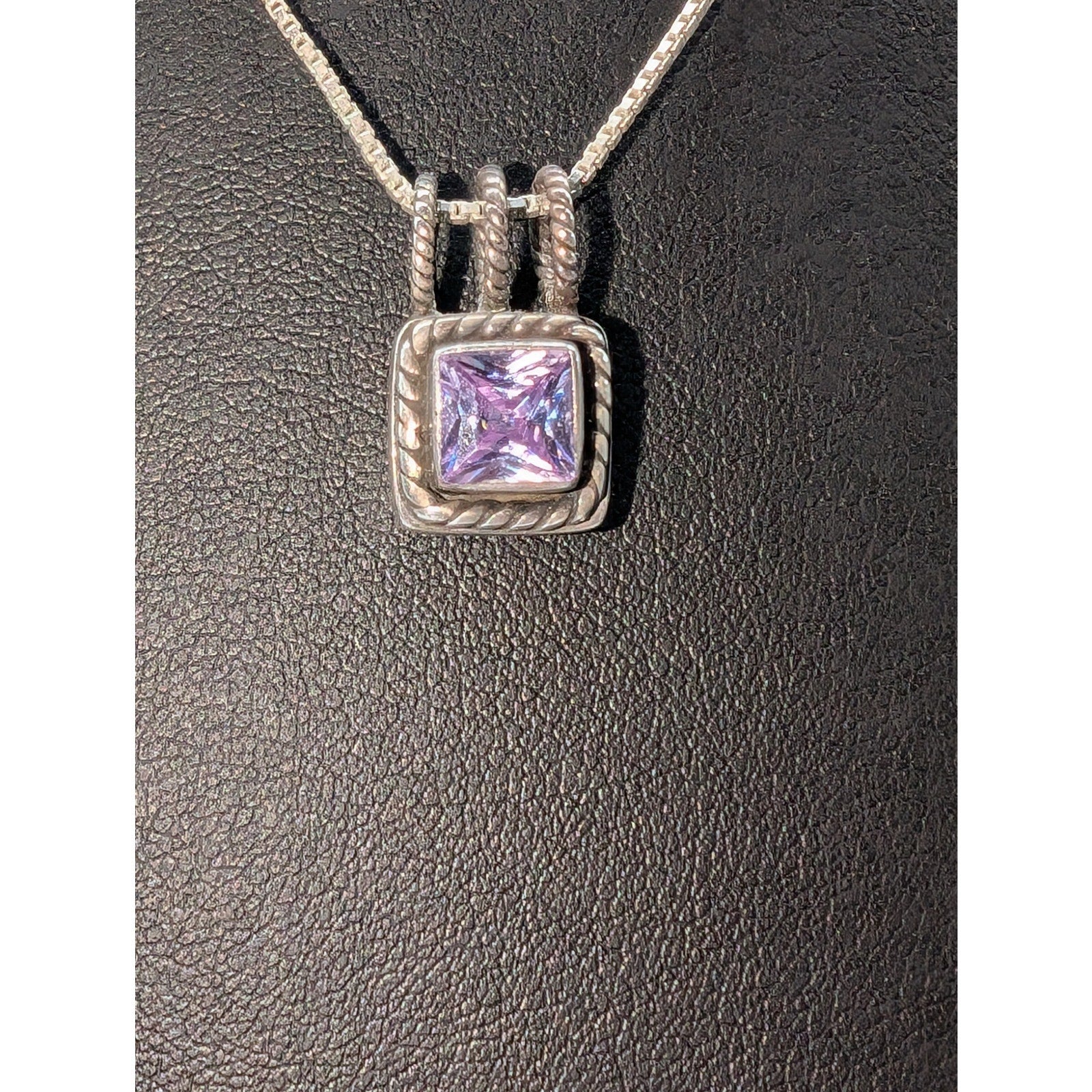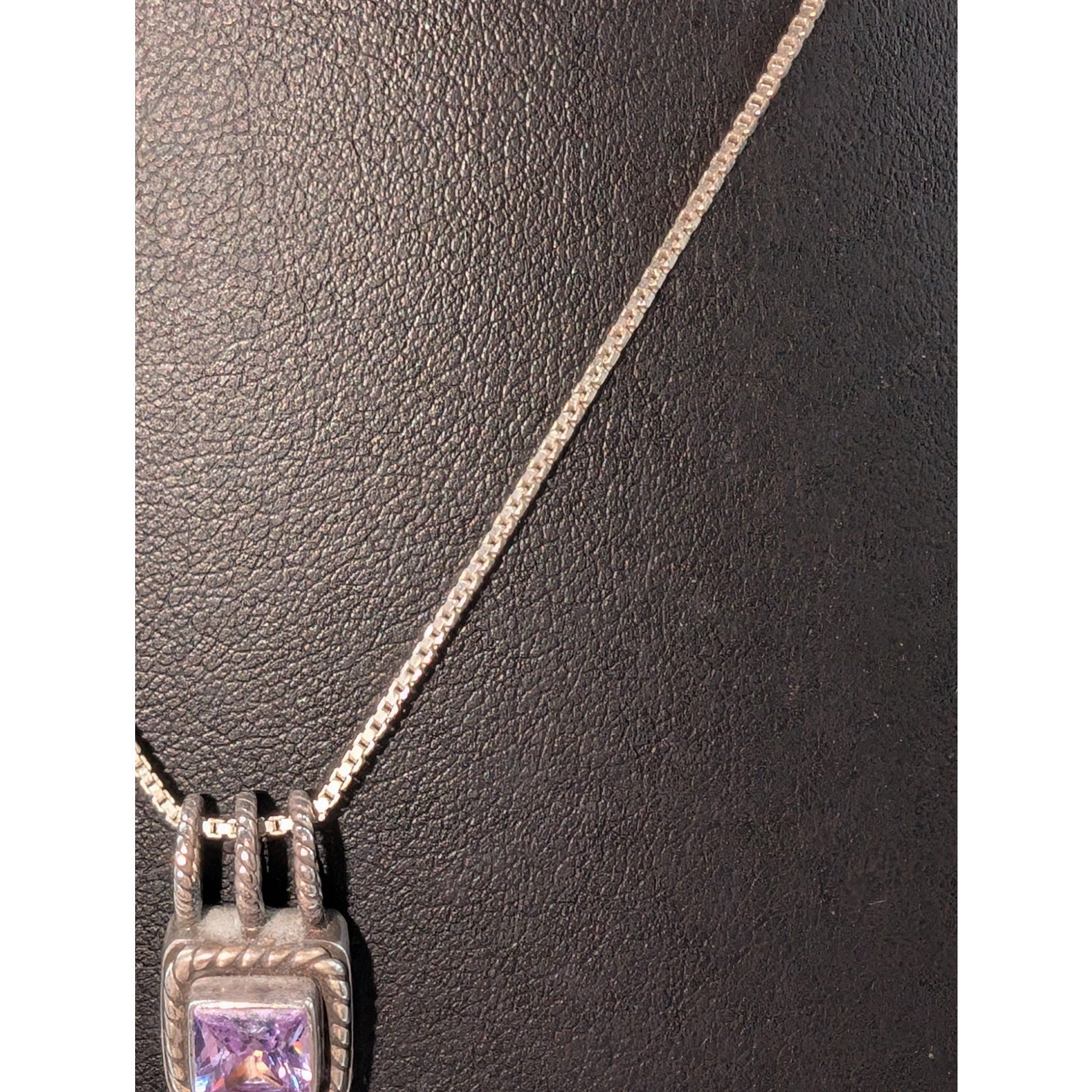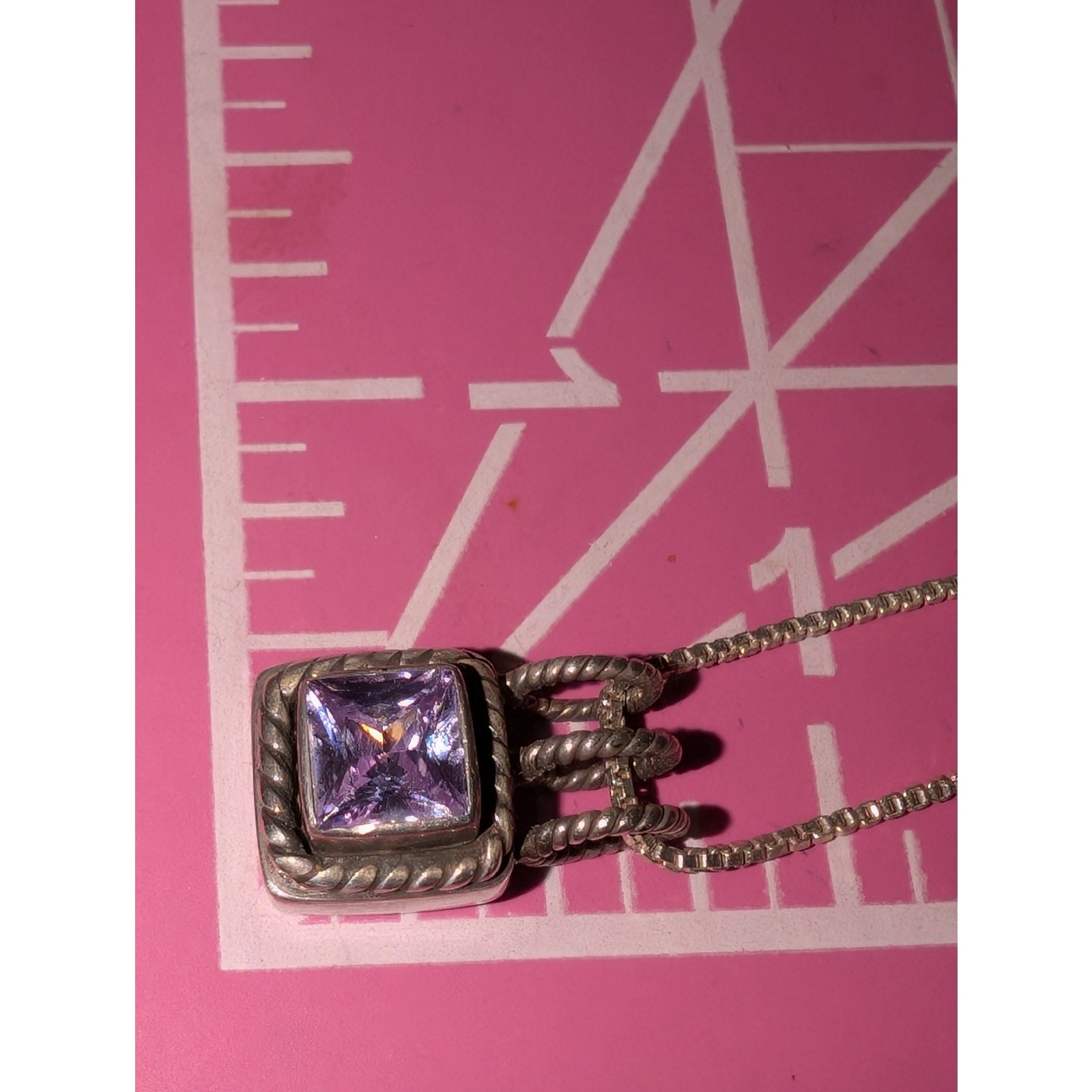 VTG Lori Bonn 925 Sterling Silver Purple Stone Pendant Box Chain 16" Necklace. Pre-owned, this necklace is in great vintage condition. Most reasonable offers are accepted.