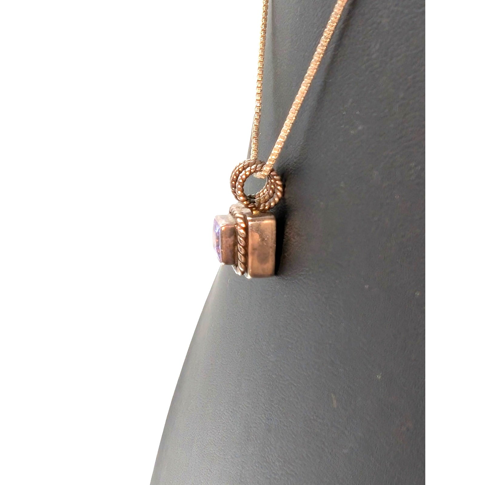 VTG Lori Bonn 925 Sterling Silver Purple Stone Pendant Box Chain 16" Necklace