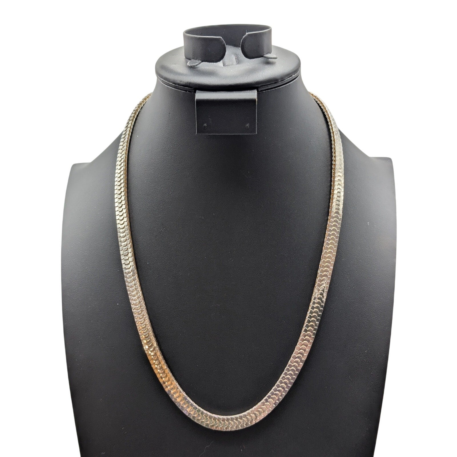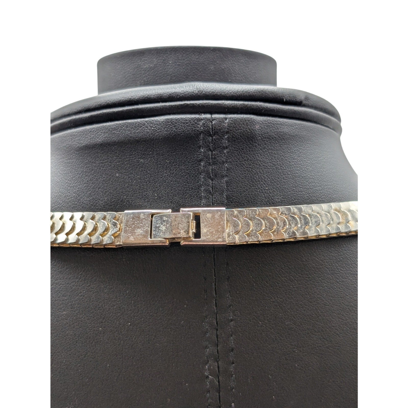 Vtg Marked Korea Silver Tone 'Fish Scale' Flexible 24" Fold Over Clasp Necklace. Measures 5/16" wide. Really nicely made vintage necklace Pre-owned, this necklace is in excellent condition. No tarnish.