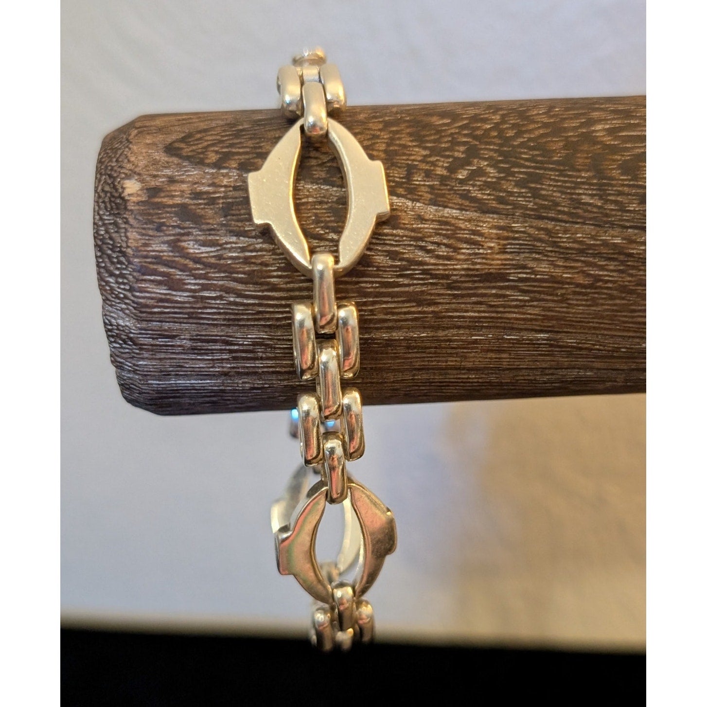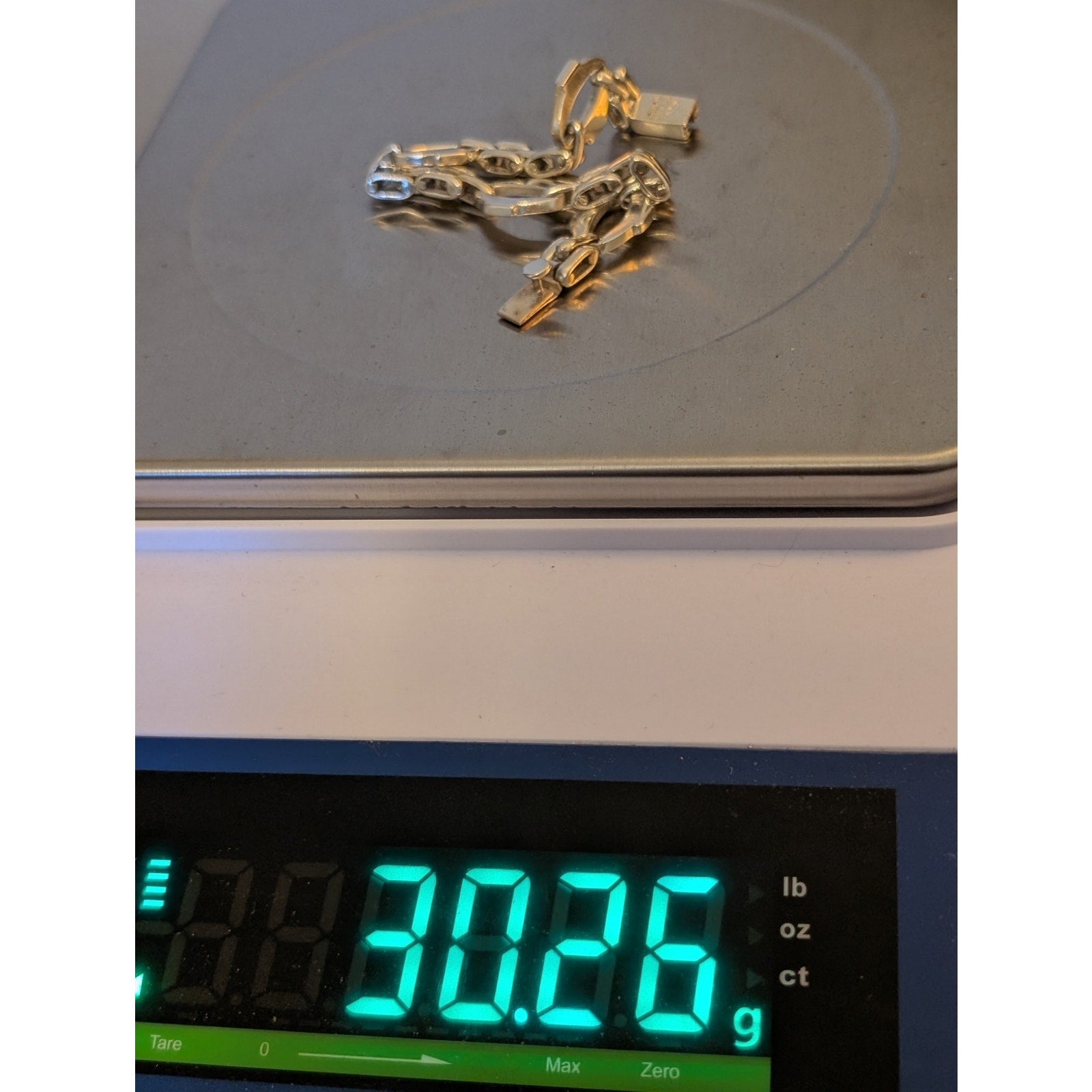 VTG Mexico Taxco Solid 925 Sterling Silver Panther Oval Link Bracelet