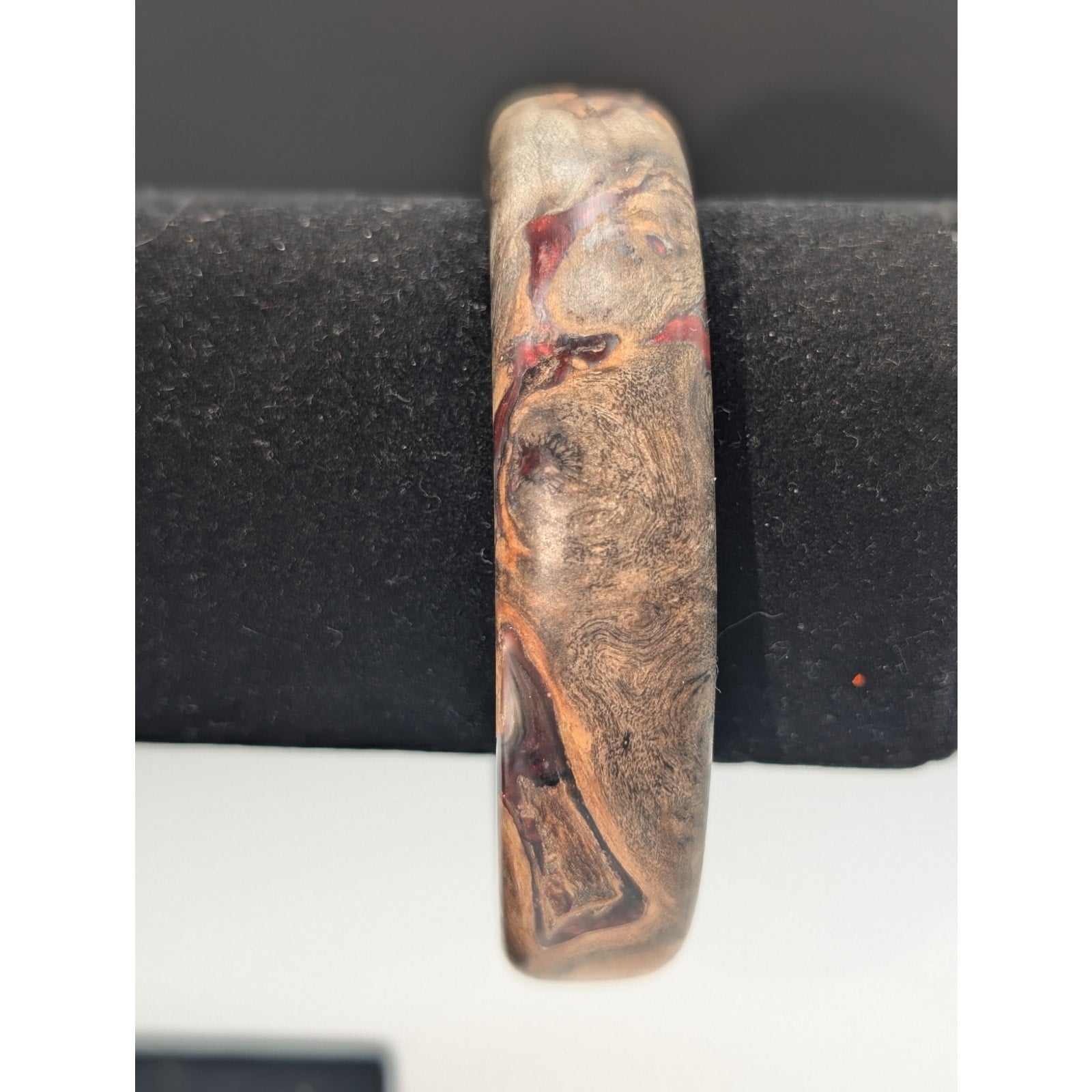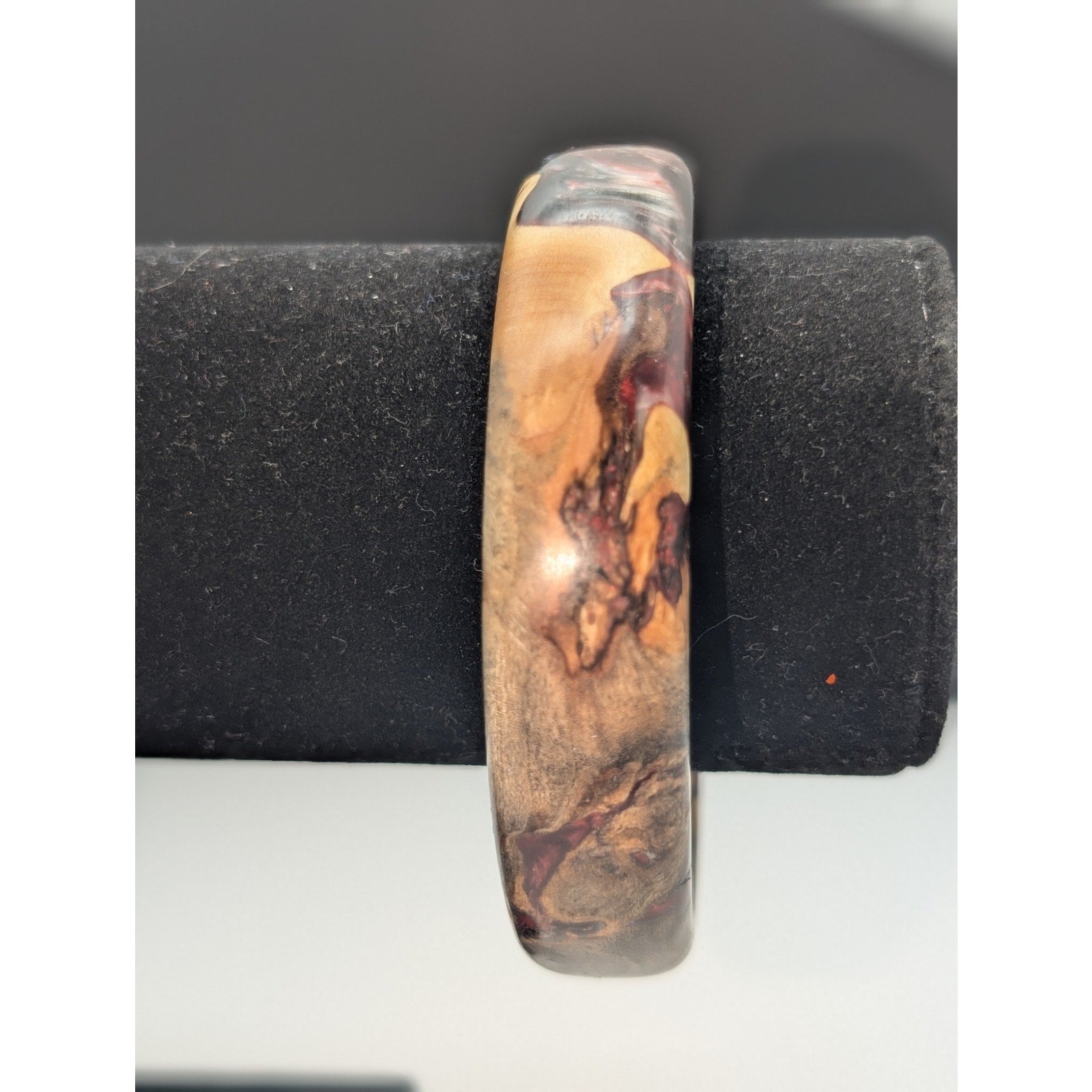 Vtg Natural Wood Colorful Browns Creams Grays & Burgundy Colored Bangle Bracelet. Gorgeous! Pre-owned, this lightweight bangle bracelet is in excellent condition.