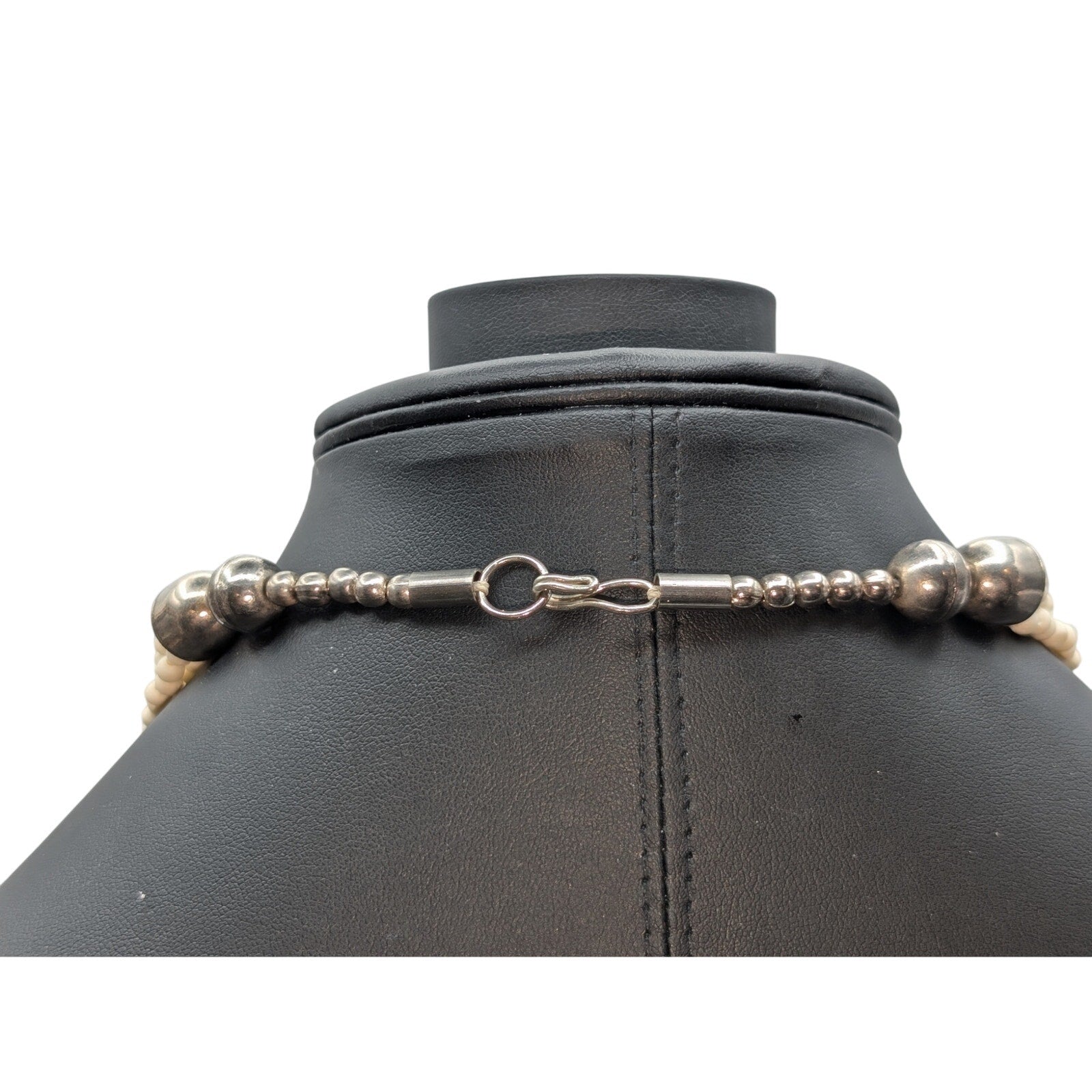 VTG Off White & Silver Bead Multi-Strand Egyptian Tribal Hook Clasp Necklace