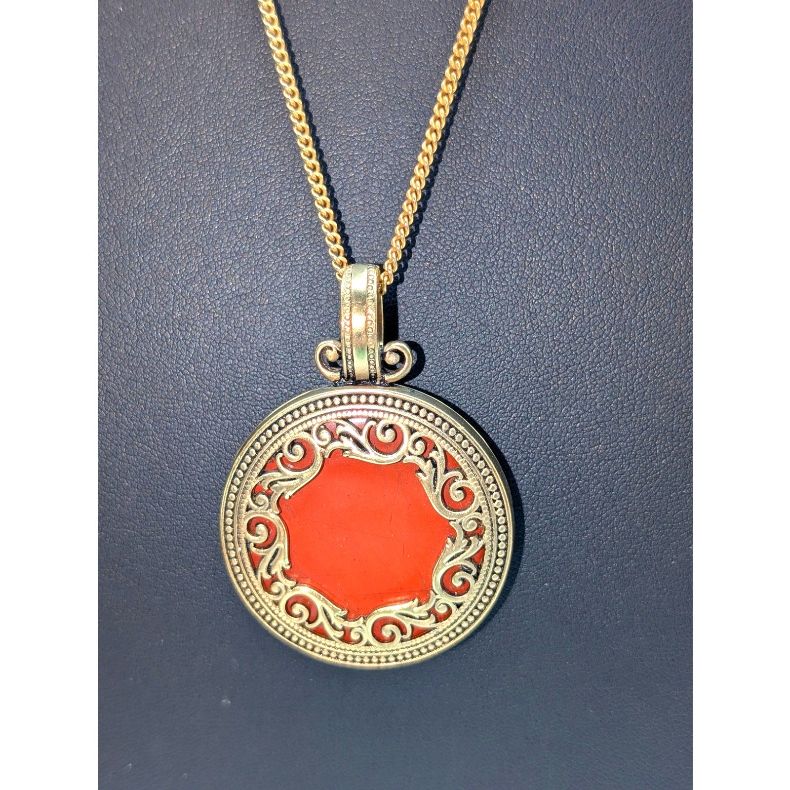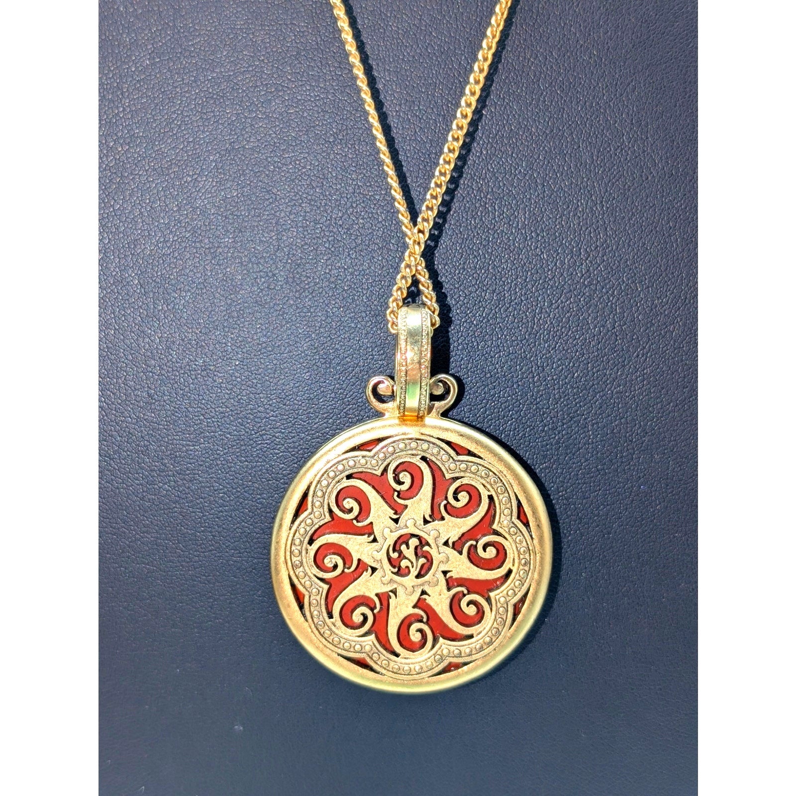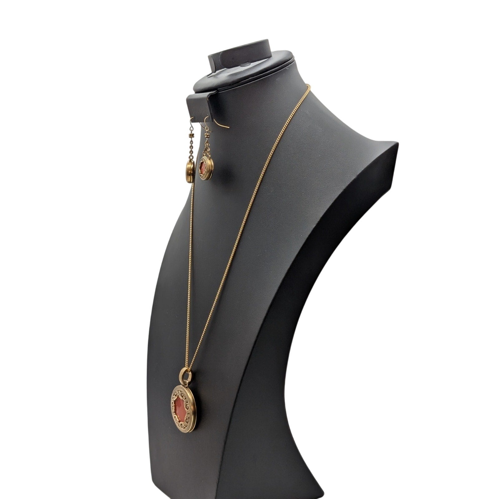 Vintage Premier Design Gold Tone Oversized Double Sided Filigree Rust Bead Middle 26" Necklace & 2.25" Dangle Earring Set. Pre-owned, this jewelry set is in excellent vintage condition.