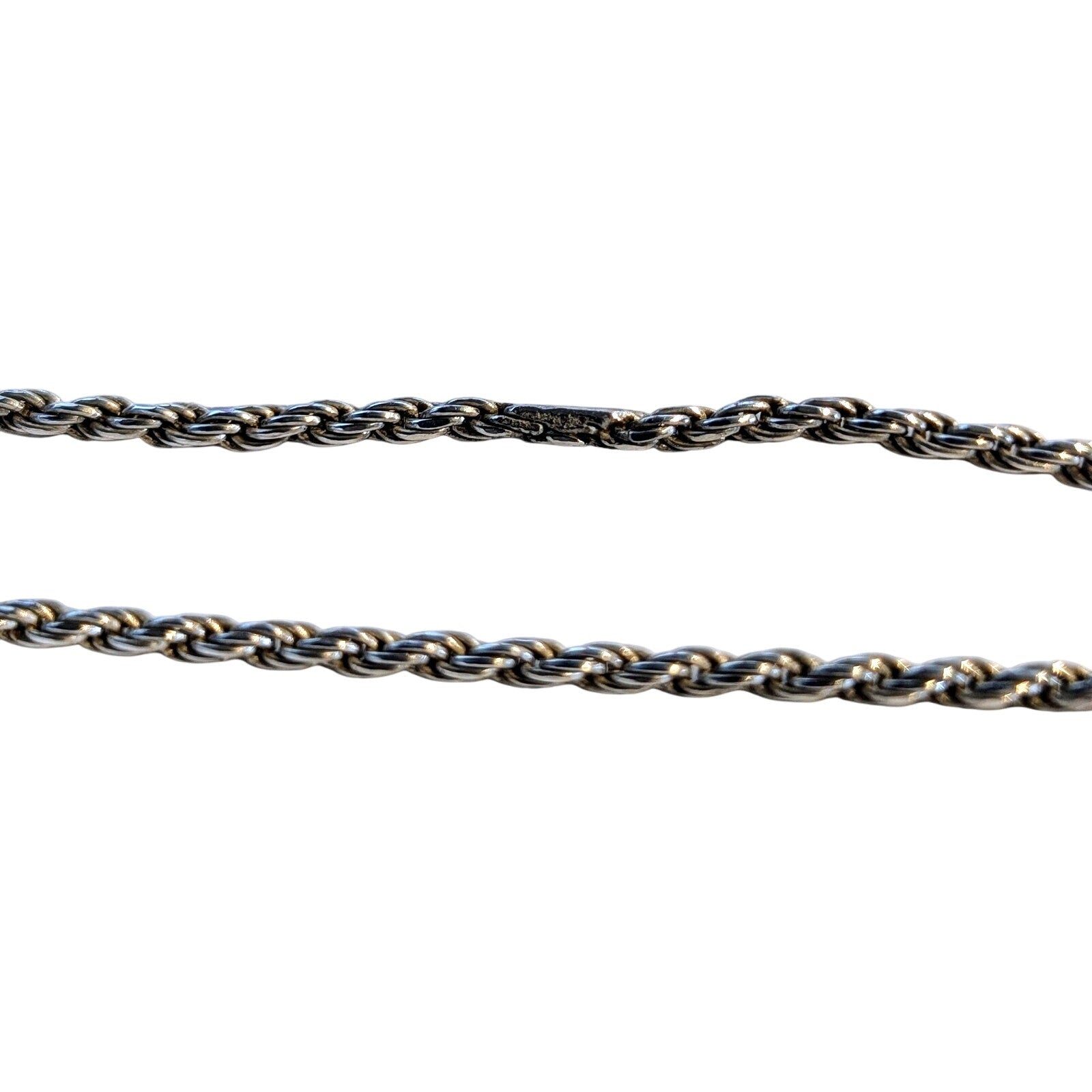 Vintage RQC Sterling Tennis Racket Faux Pearl Charm 16" 925 Sterling Rope Chain Necklace. Pre-owned, this necklace is in excellent vintage condition. There is one place on the chain where a jeweler has made a repair by soldering it. There are no jaggy edges but smooth. I am discounting the chain some for that repair.