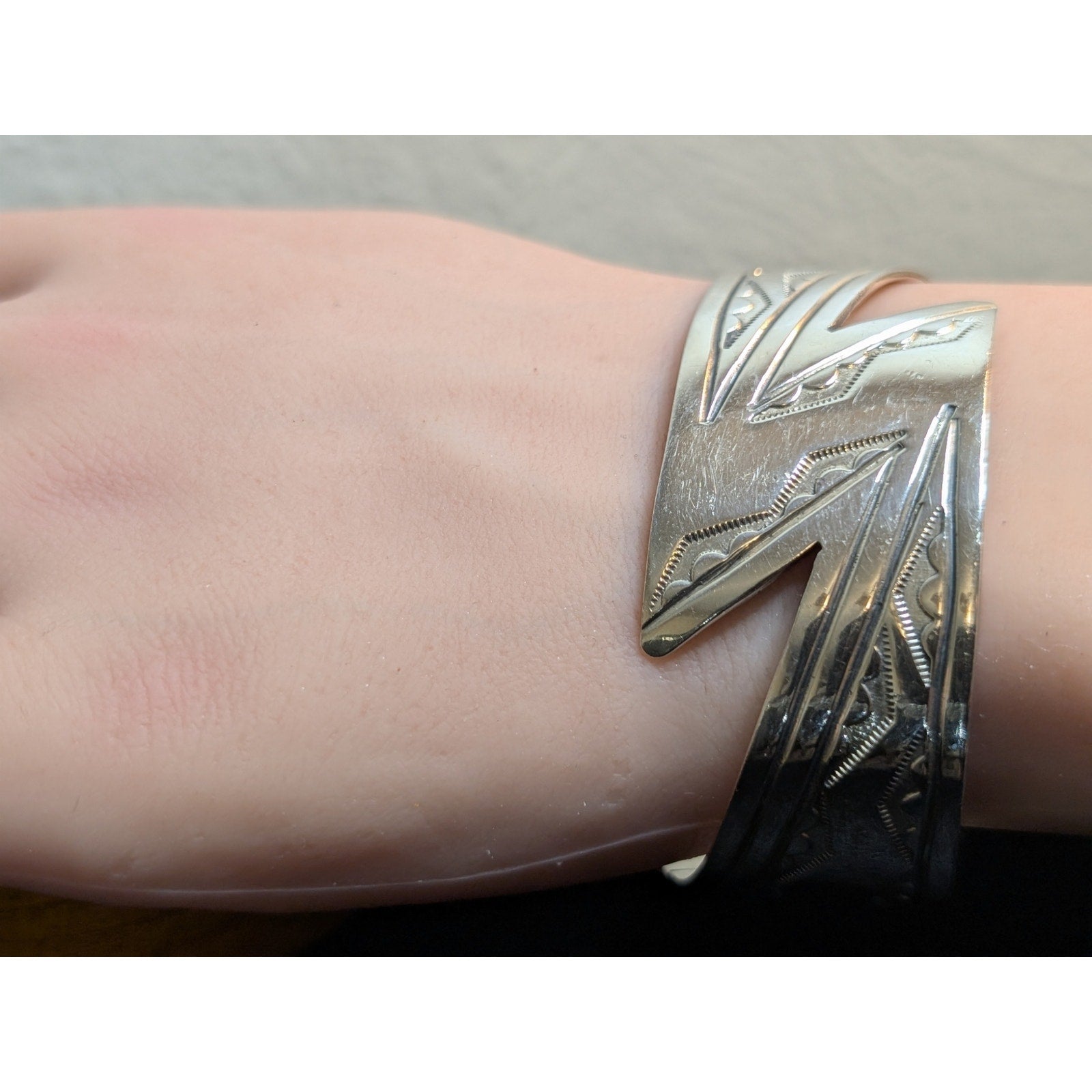 VTG Signed RJ Sterling Silver Navajo Native American Cuff Bracelet 36.66 grams