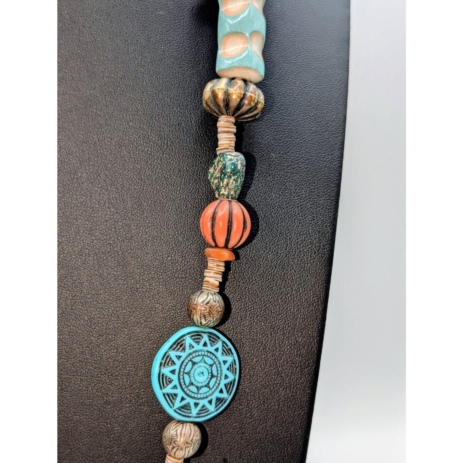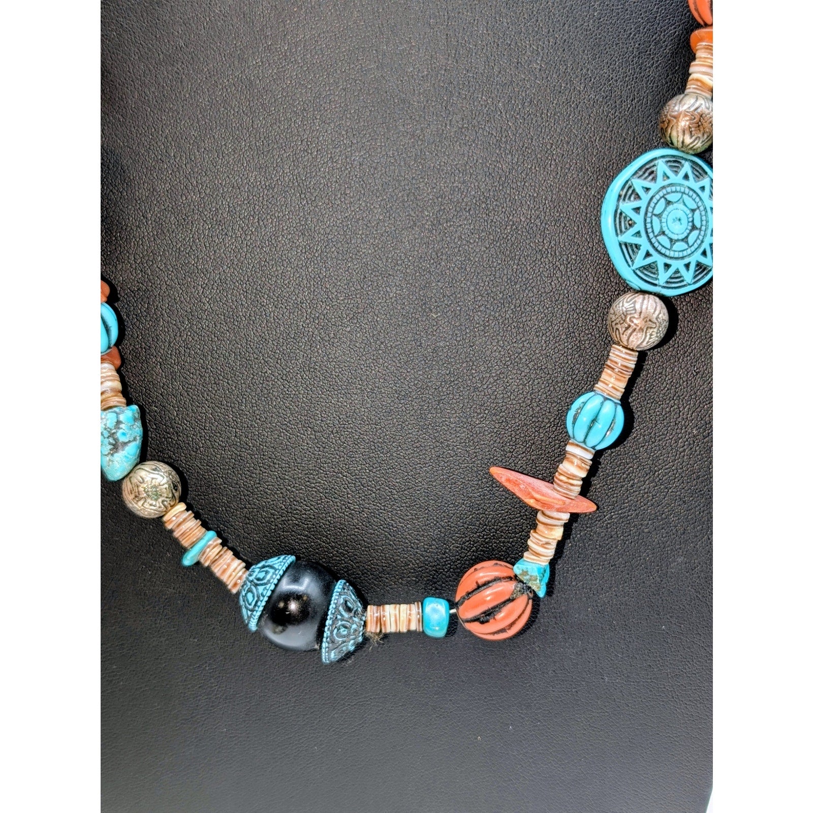 Vtg Southwestern Multi-Shape & Heishi Bead Turquoise Terra Cotta Color Necklace