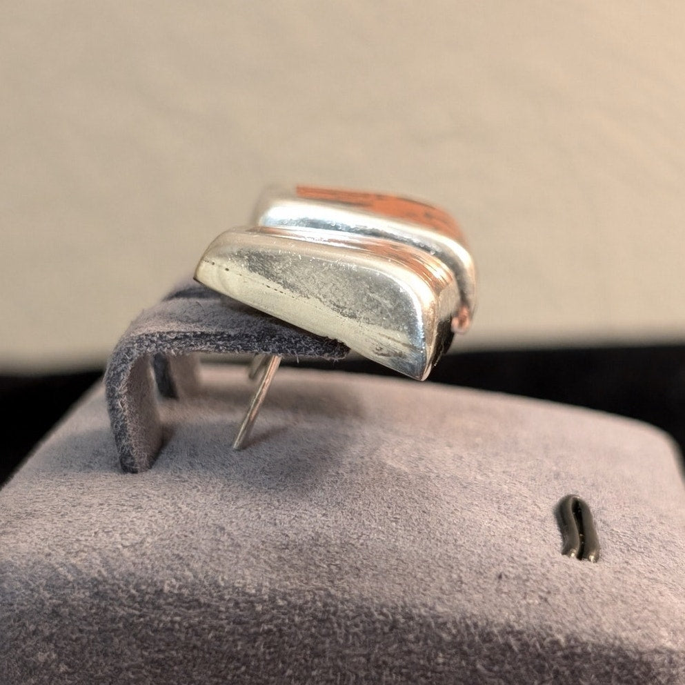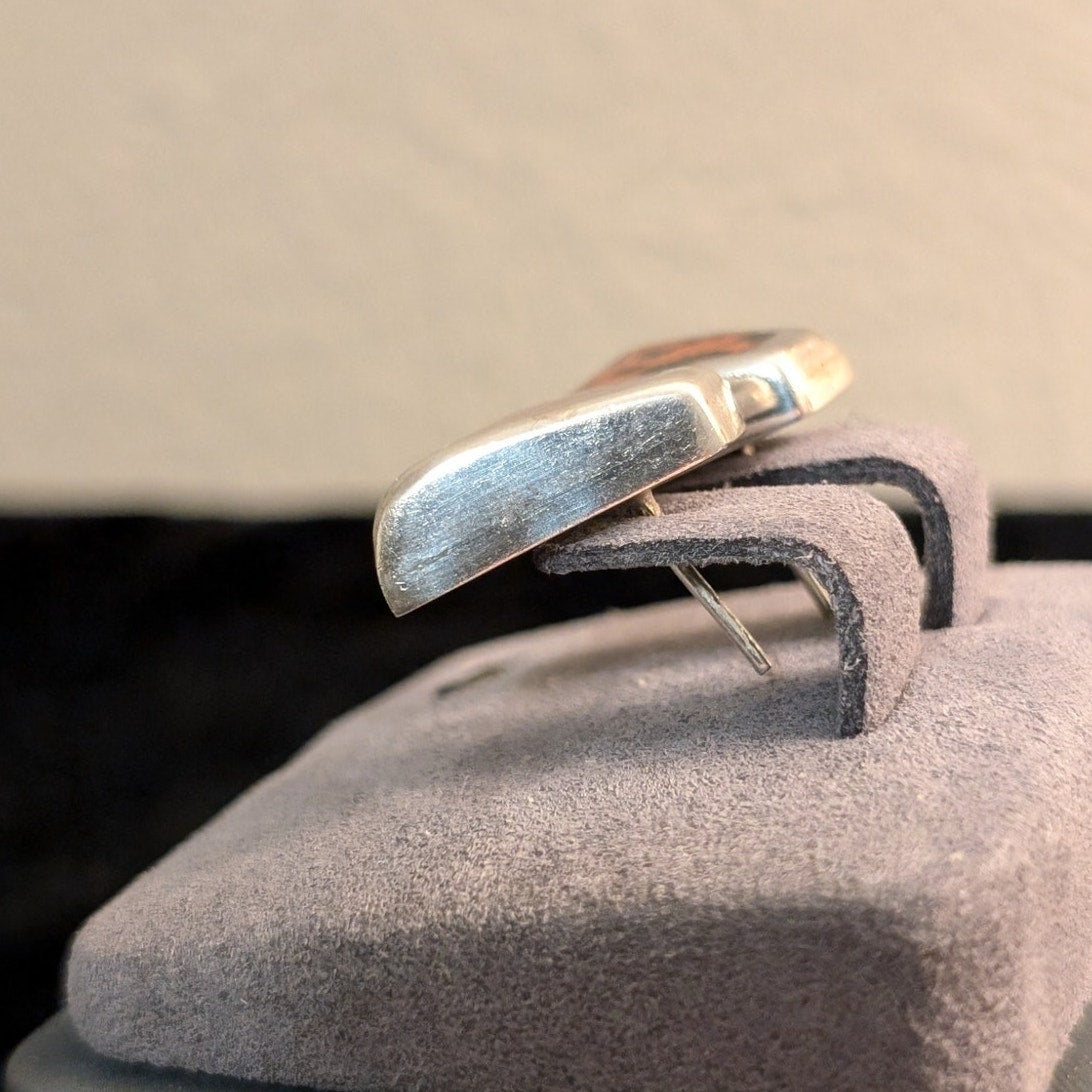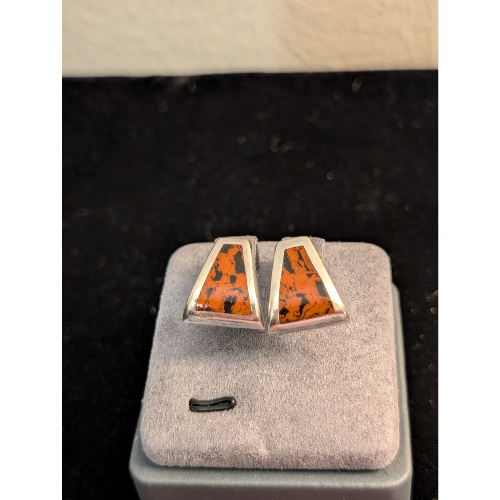 Vtg Stamped Taxco Mexico 925 Sterling Chunky Mahogany Obsidian Post Earrings. Pre-owned, these earrings are 1/4" thick at their widest point. They measure 3/4" long by 1/2" wide. Pre-owned, they are in excellent condition.