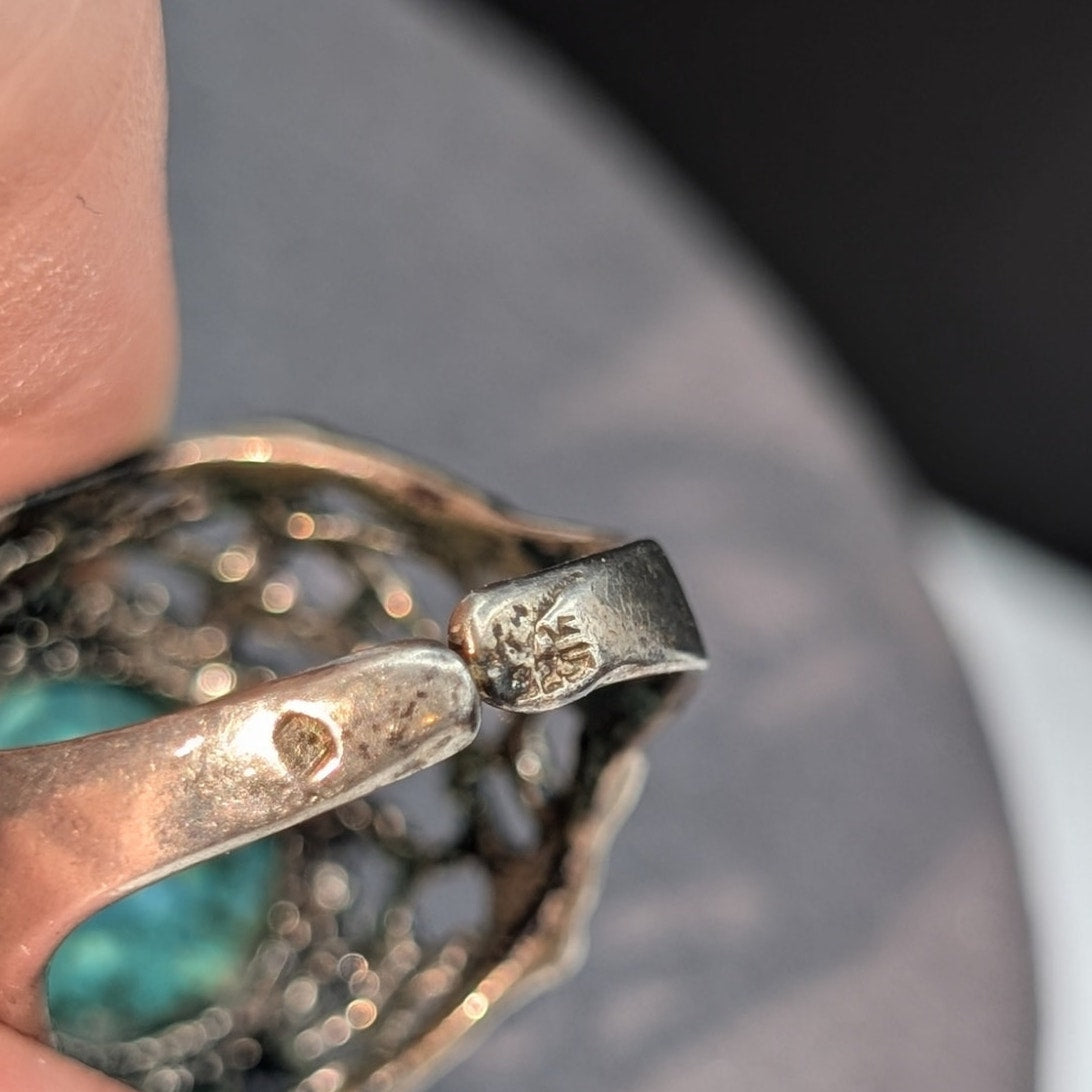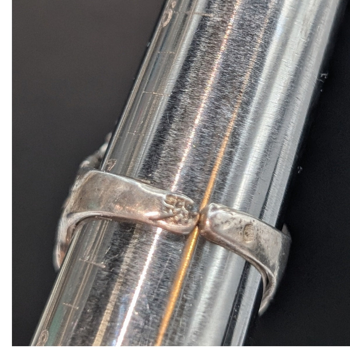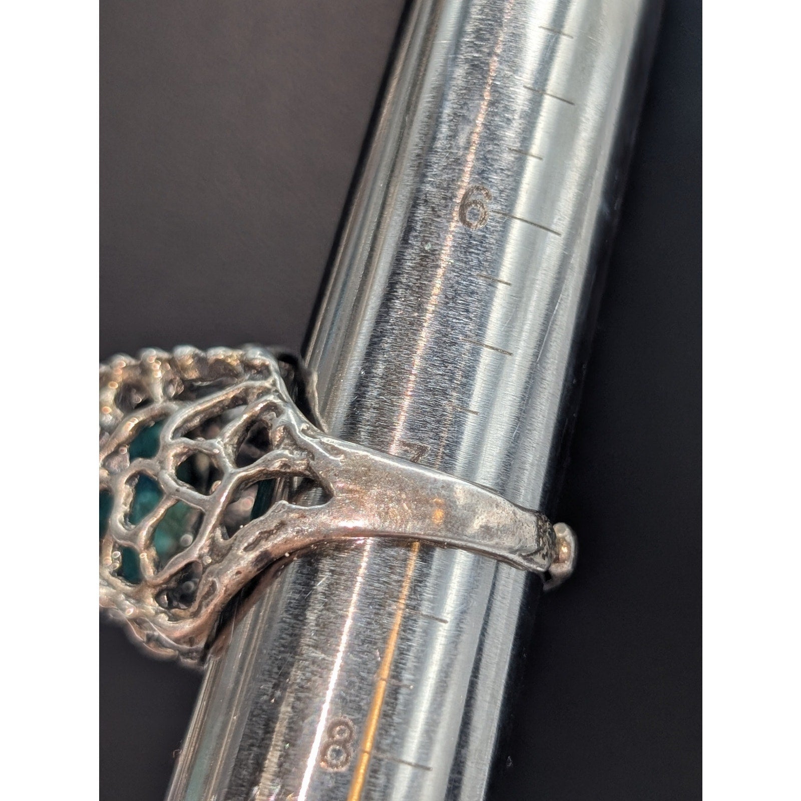 Vtg Sterling Silver Green Stone Brutalist Modern High Dome Ring Sz 7. Pre-owned, this ring is in excellent vintage condition. Very cool. Open and marked in back of band, but I don't know what the markings stand for.