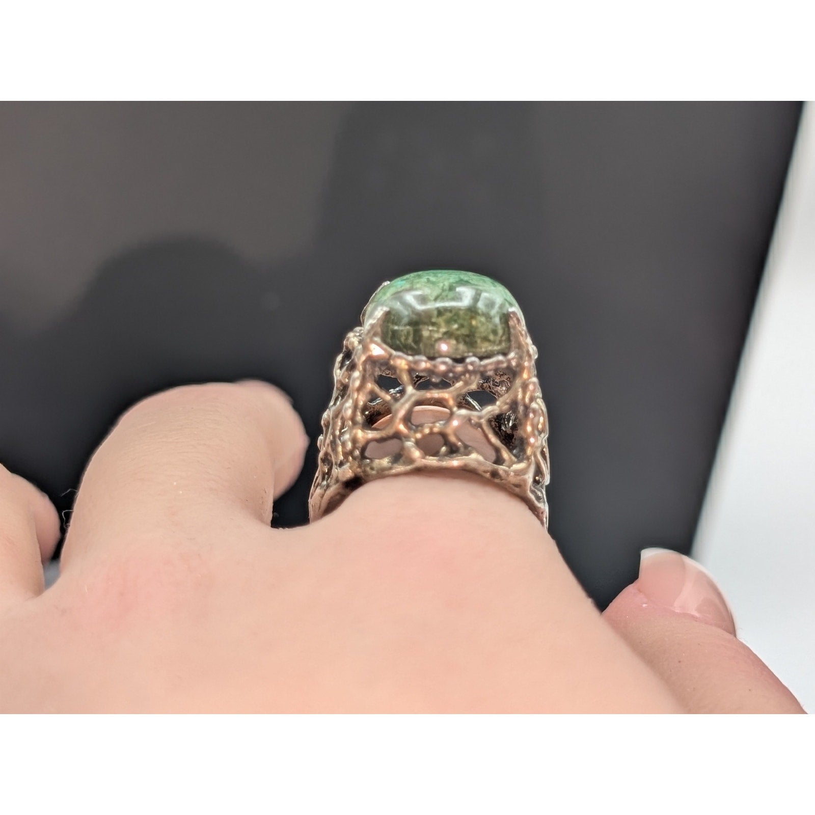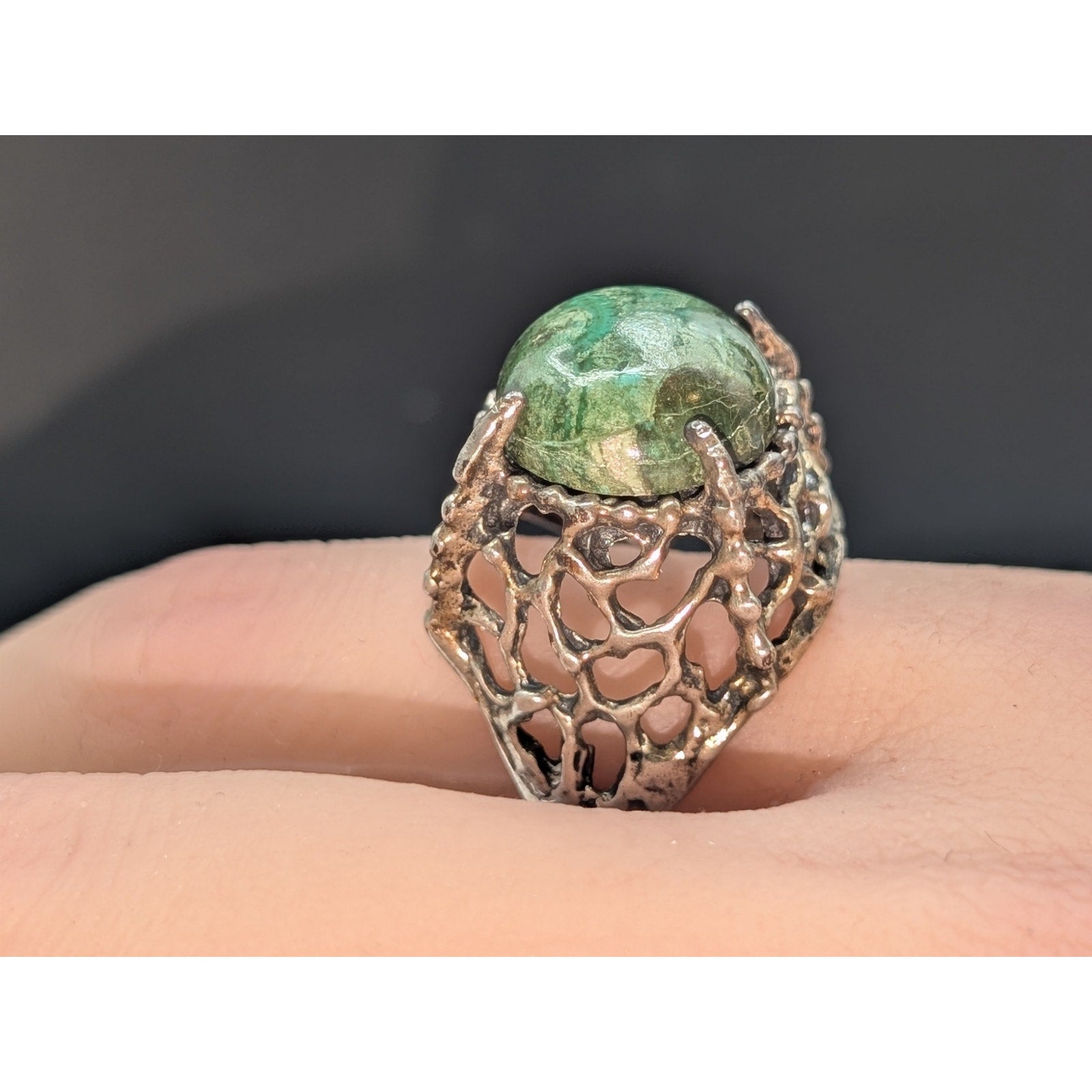 Vtg Sterling Silver Green Stone Brutalist Modern High Dome Ring Sz 7