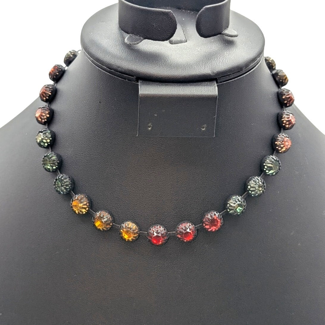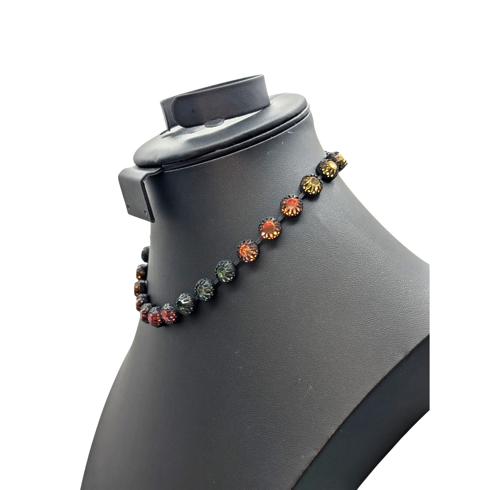 Zara Multi-Fall-Color Rhinestone Gunmetal Choker Necklace 12-15"
